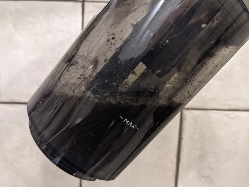 Вес пылесоса с пустыми резервуарами для чистой и грязной воды составляет 4830 г. Резервуар для чистой воды, заполненный «под пробку», вмещает 886 мл воды. Таким образом, общий вес Dreame H11 5716 г — это немало.