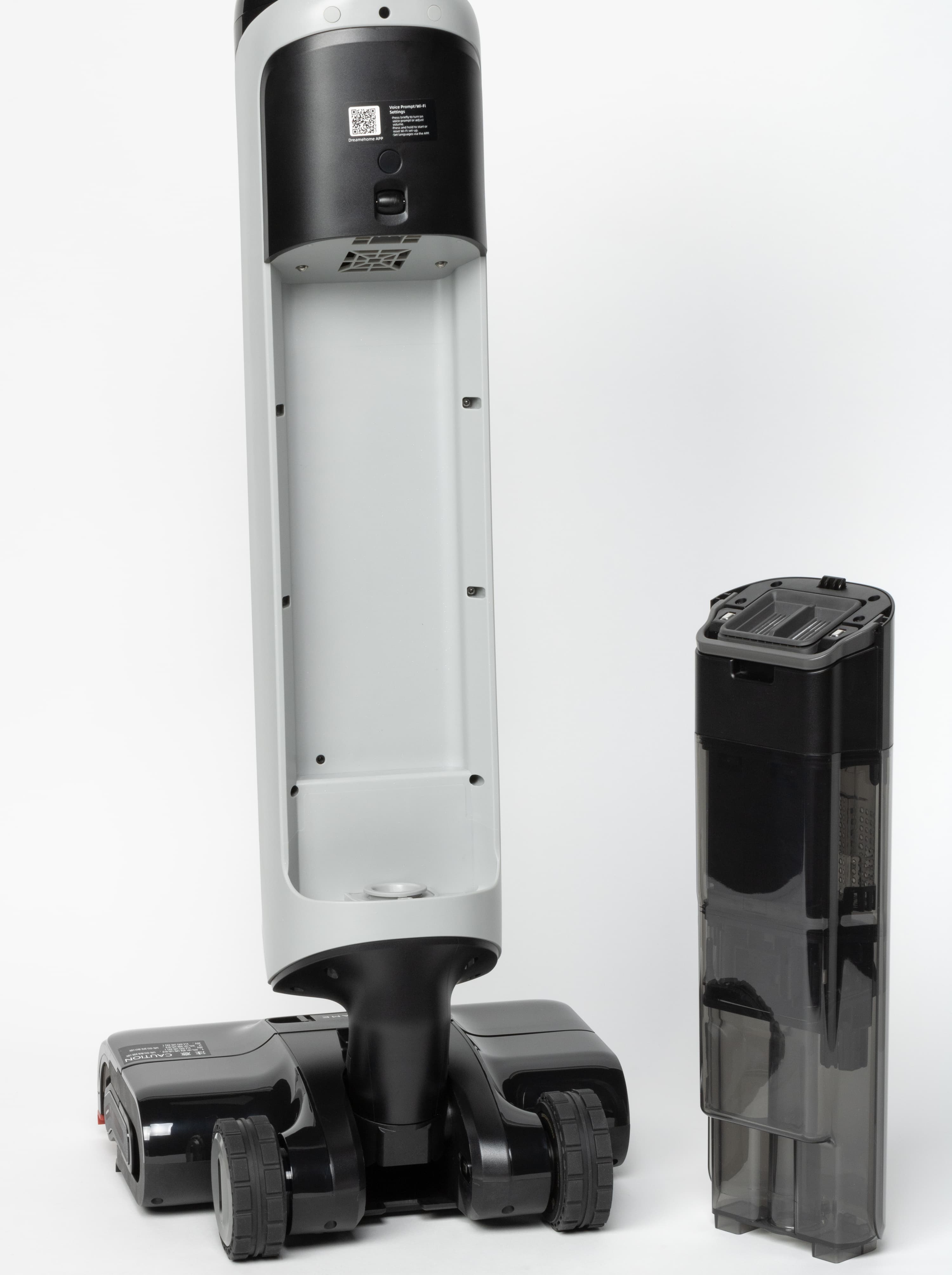- моторный блок пылесоса с несъемным аккумулятором, несъемной насадкой-подошвой и двумя контейнерами для чистой и грязной воды