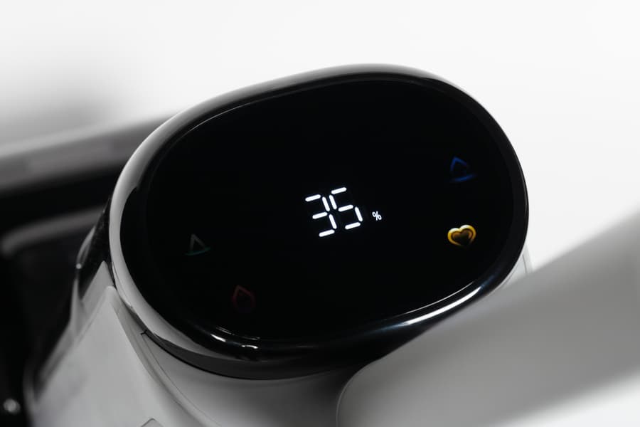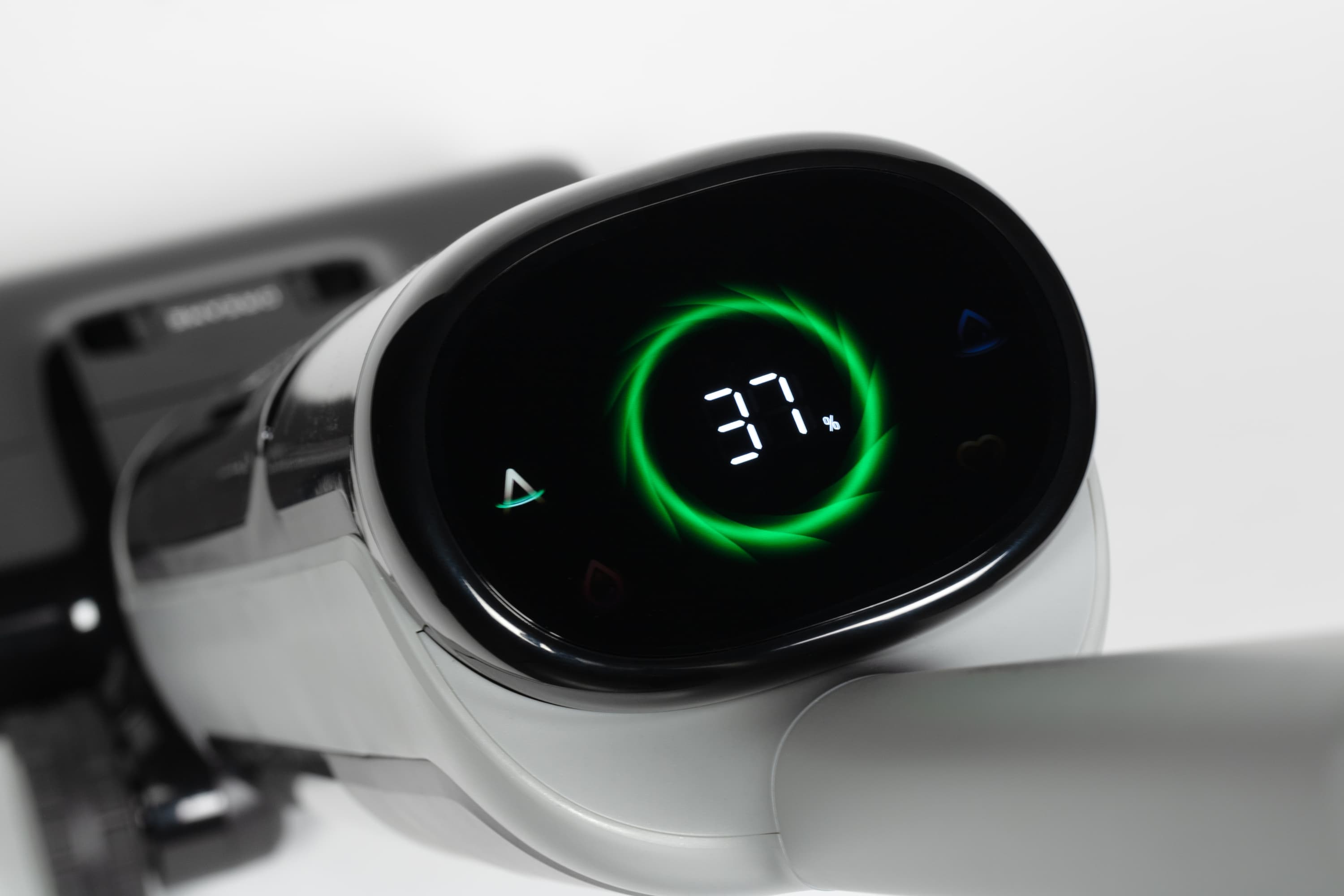 Перед началом эксплуатации нового прибора его аккумулятор следует полностью зарядить. Традиционно мы оставили прибор на базе на всю ночь. Уровень зарядки отображается на дисплее устройства, а по окончании цикла индикаторы гаснут: можно приступать к уборке.