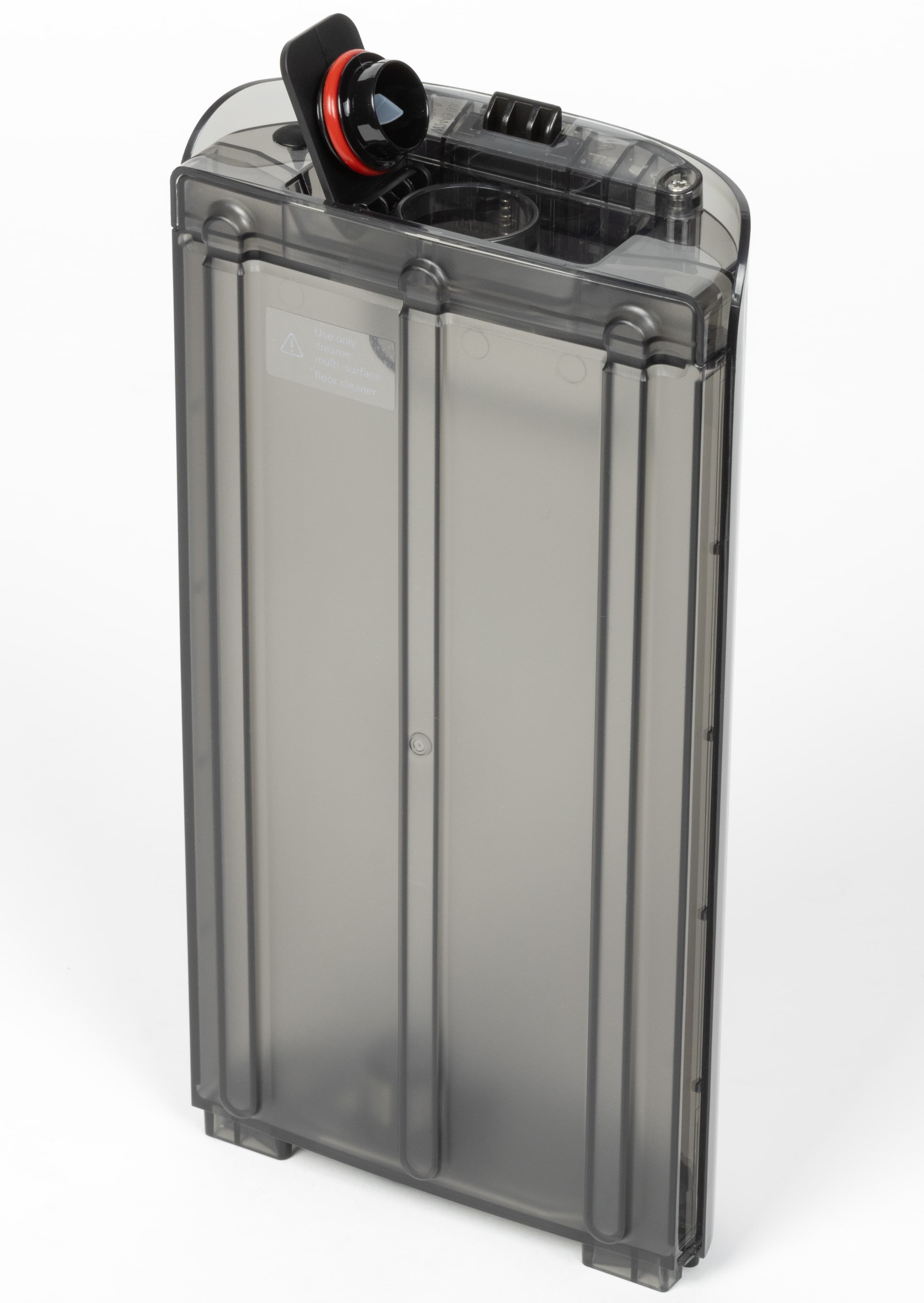 Стенки резервуара позволяют визуально контролировать уровень грязной воды в баке, но практической необходимости в этом, как правило, нет: по достижении максимального уровня пылесос прекращает работу и требует очистить мусоросборник. Точно так же приходит оповещение и о необходимости долить чистую воду. В «горизонтальном» режиме опустошать бак с грязной водой придется чаще: максимальный объем воды составит 400 мл (против 650 мл в вертикальном режиме).