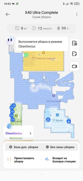 По завершении работы на карте появятся зоны с повышенным загрязнением. «Карта грязных районов» позволит повторно очистить некоторые участки квартиры.