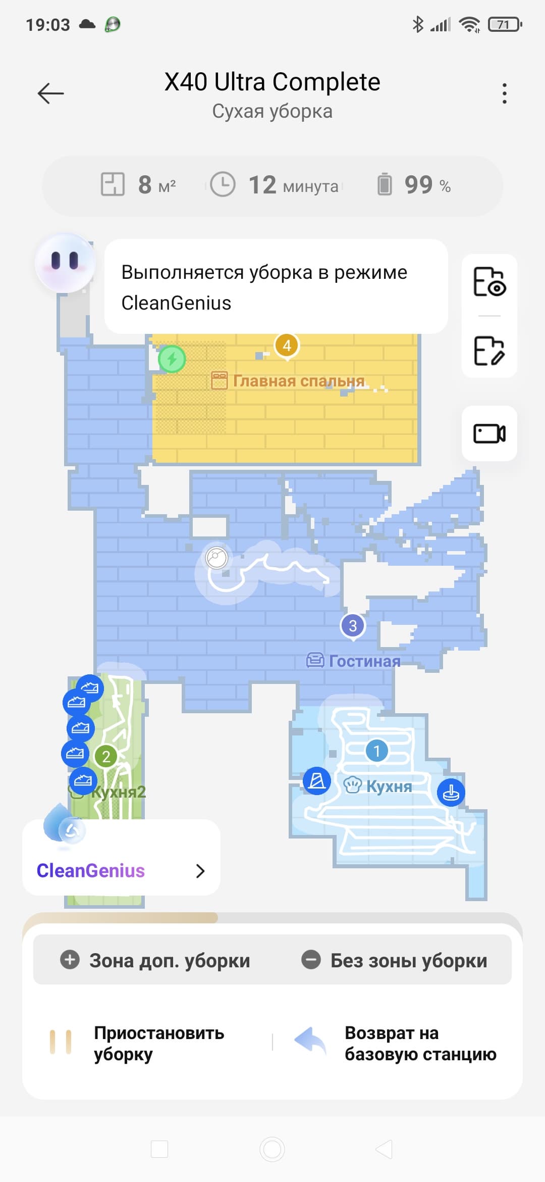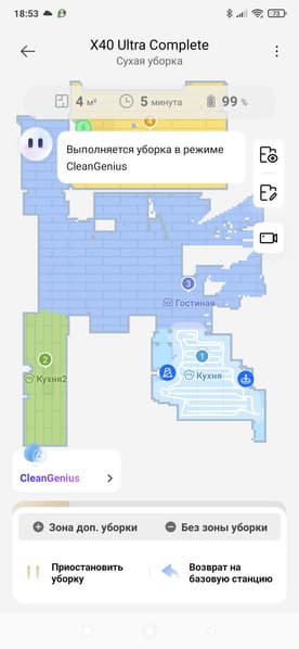 Увы, но без опечаток и незначительных ошибок в приложении не обошлось. В большинстве случаев они не мешают, однако иногда могут ввести в заблуждение. Например, приложение сообщает, что робот проводит сухую уборку, а по факту он работает в режиме совмещенной (сухой и влажной) уборки.