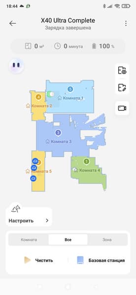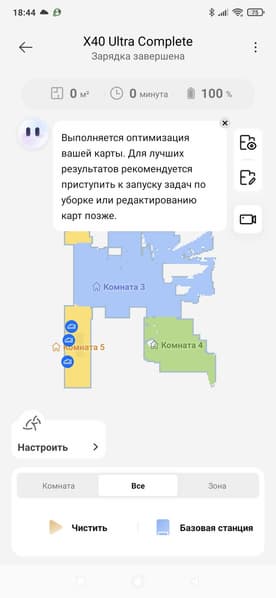 Для нескольких комнат порядок уборки будет определен в соответствии с пользовательскими (или автоматическими) настройками.
