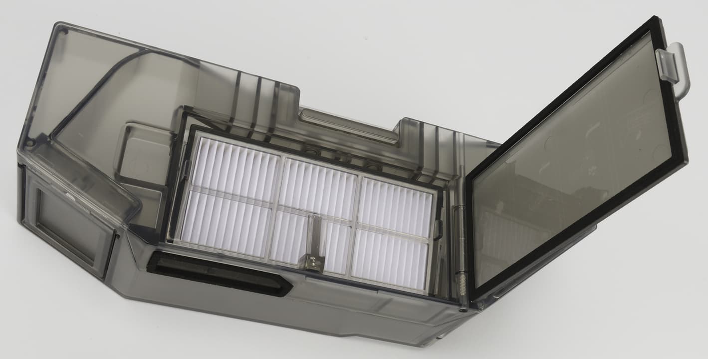 Фильтрация осуществляется с помощью модуля тонкой очистки, состоящего из частой сетки из синтетического материала и прямоугольного HEPA-элемента. Их придется время от времени извлекать и чистить вручную.