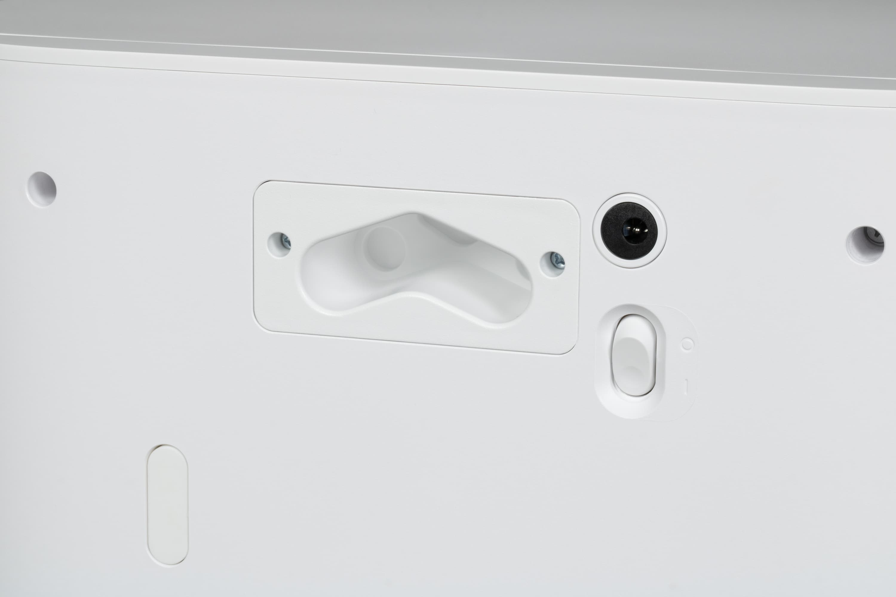С противоположной стороны сенсоров нет. Тут мы видим разве что отверстие для сброса собранного мусора в базу.