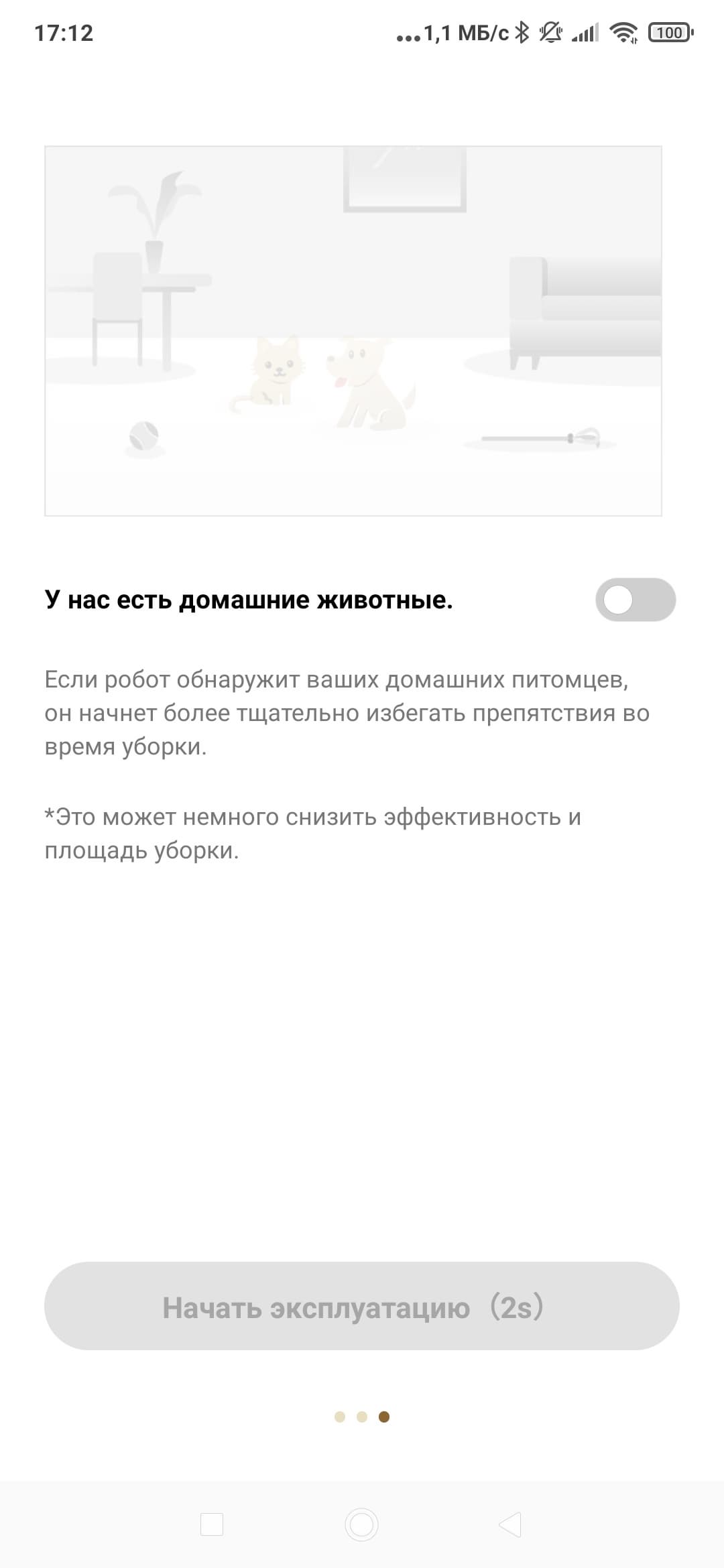 При первом знакомстве с приложением пользователю показывают ряд рекомендаций, которые сделают работу пылесоса эффективнее: перед запуском пылесоса крайне желательно убрать возможные препятствия, провода, мелкие вещи и детские игрушки, которые могут затруднить перемещение и уборку. На этом же этапе можно сообщить устройству, что в доме есть неаккуратные домашние животные: тогда пылесос будет стараться распознавать на полу следы их жизнедеятельности и по возможности с ними не пересекаться. Эту опцию оценит всякий собаковод или кошковладелец, хотя бы раз отмывавший робота-пылесоса после того, как тот въехал в кучку экскрементов и размазал их по полу.