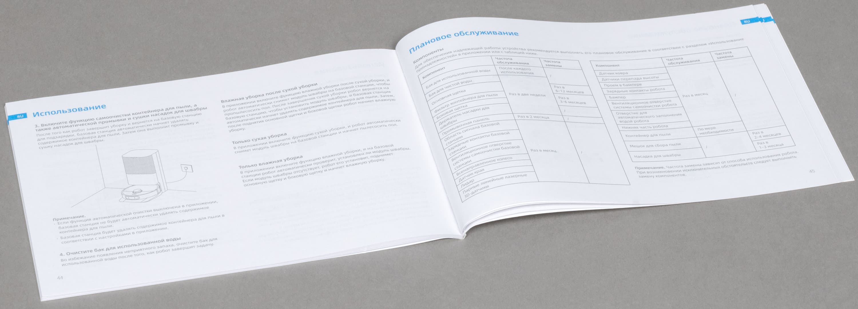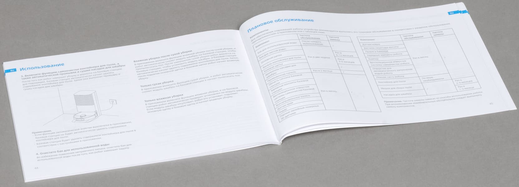 В инструкции подробно описывается устройство робота и базы, эксплуатация прибора и уход за ним. Тут читатель найдет также много картинок с подписями и таблицу устранения типовых неисправностей. Прочитать все это крайне рекомендуется. Ничего сложного тут нет, однако после ознакомления сразу станет понятно, как правильно пользоваться роботом, как его очищать и что тут вообще для чего нужно.