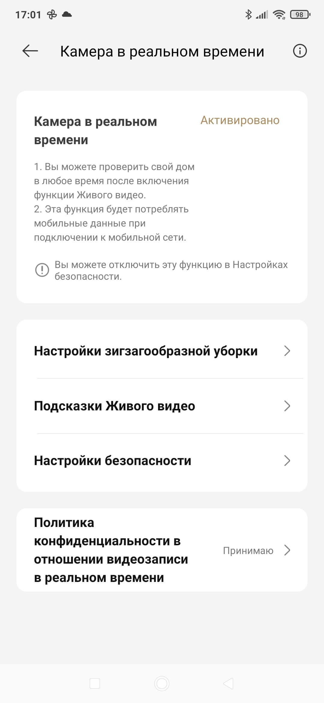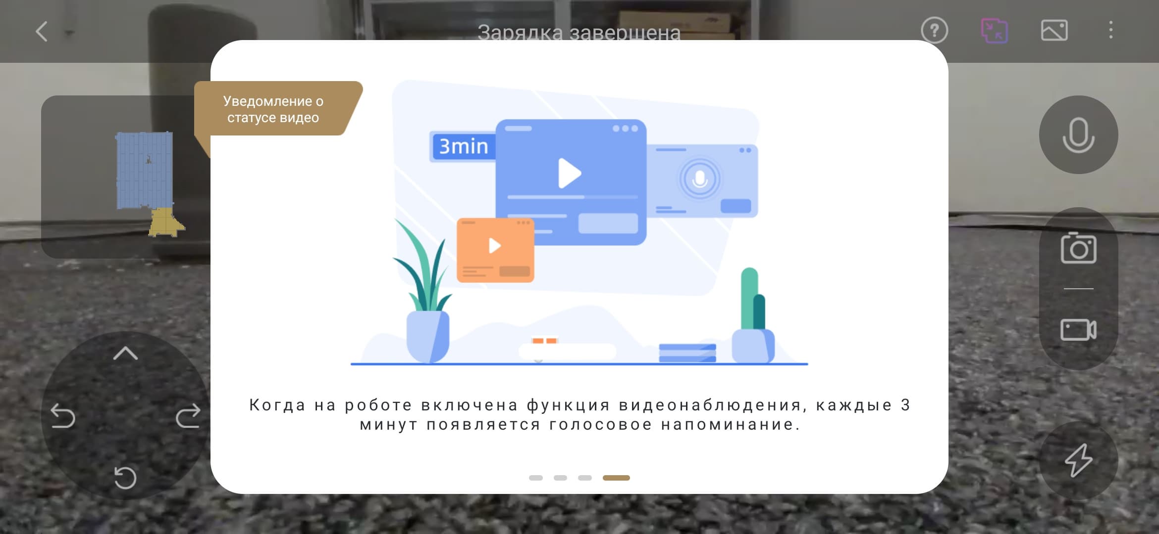 Тут мы можем записать небольшое видео и мгновенно загрузить его на свой смартфон. Качество среднее, однако режим вполне рабочий. А можно пообщаться с тем, кто в данный момент находится дома. Буквально, «позвонить на пылесос».