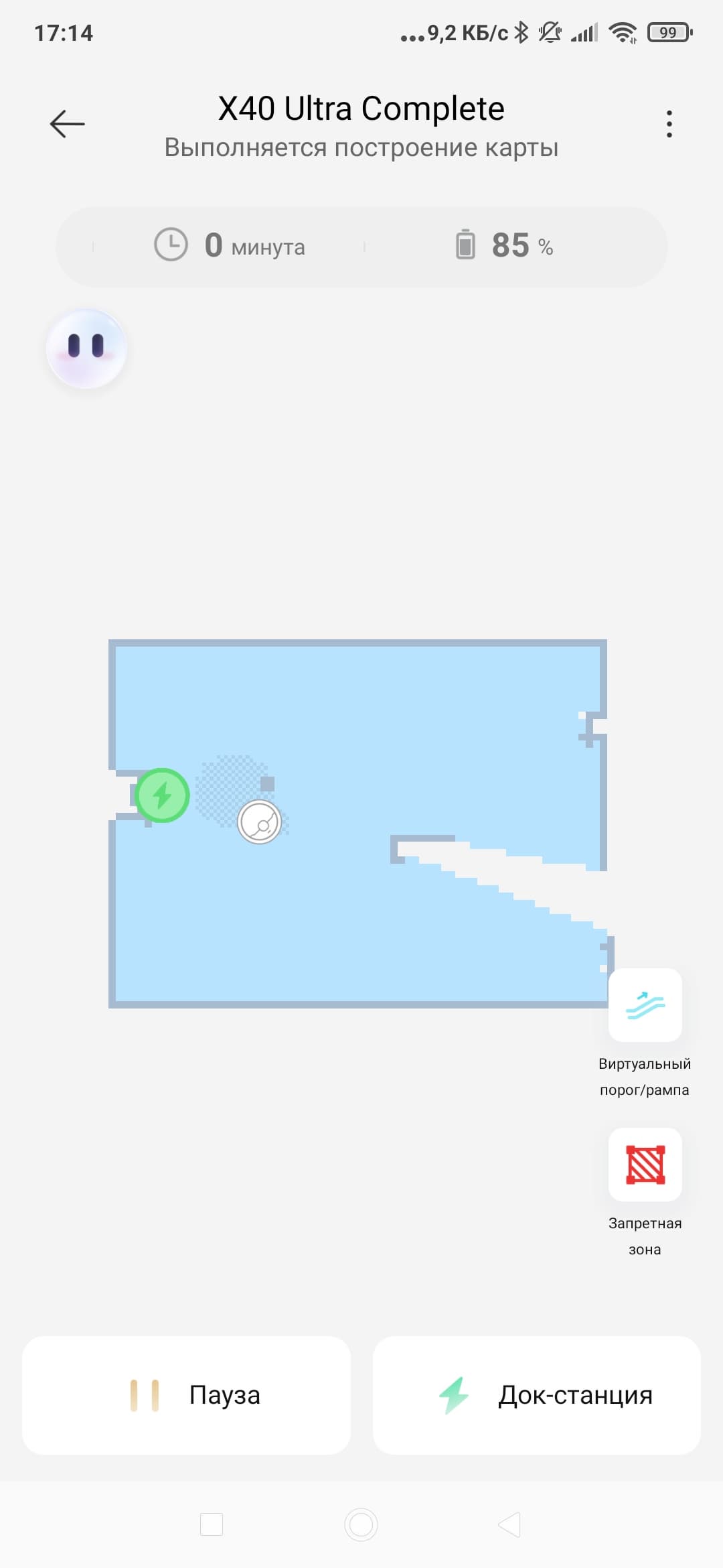 Оказавшись в незнакомом помещении, робот деловито осматривается и, приступая к построению карты, начинает рисовать на экране мобильного приложения все, что увидит. Впоследствии, уже в процессе уборки, карта будет дополняется. На ней, например, могут появиться новые препятствия (они будут сфотографированы и отмечены соответствующими иконками).