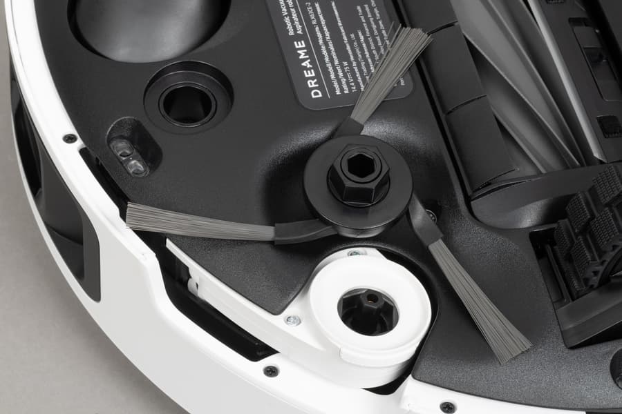 Продолжим разглядывать сенсоры. Со стороны щетки мы видим специальный сенсор, с помощью которого робот определяет расстояние до стен. Таким образом он может путешествовать вдоль них практически вплотную.
