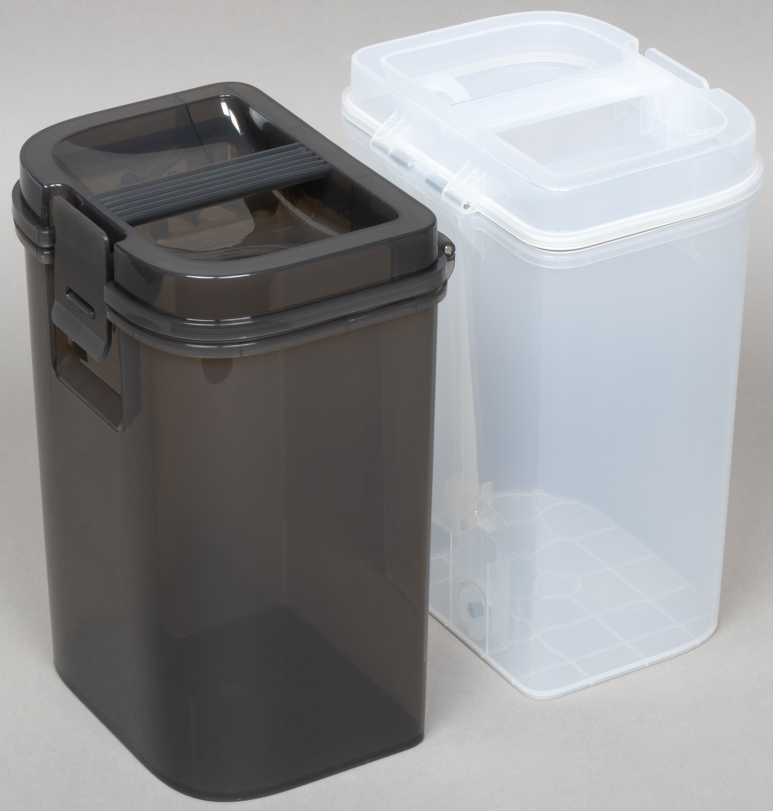 Контейнер сделан из полупрозрачного серого пластика.