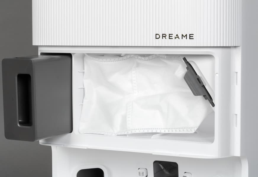 В самой базе место установки рамки оборудовано механическим датчиком: без правильно установленного мешка самоочистка не запустится.