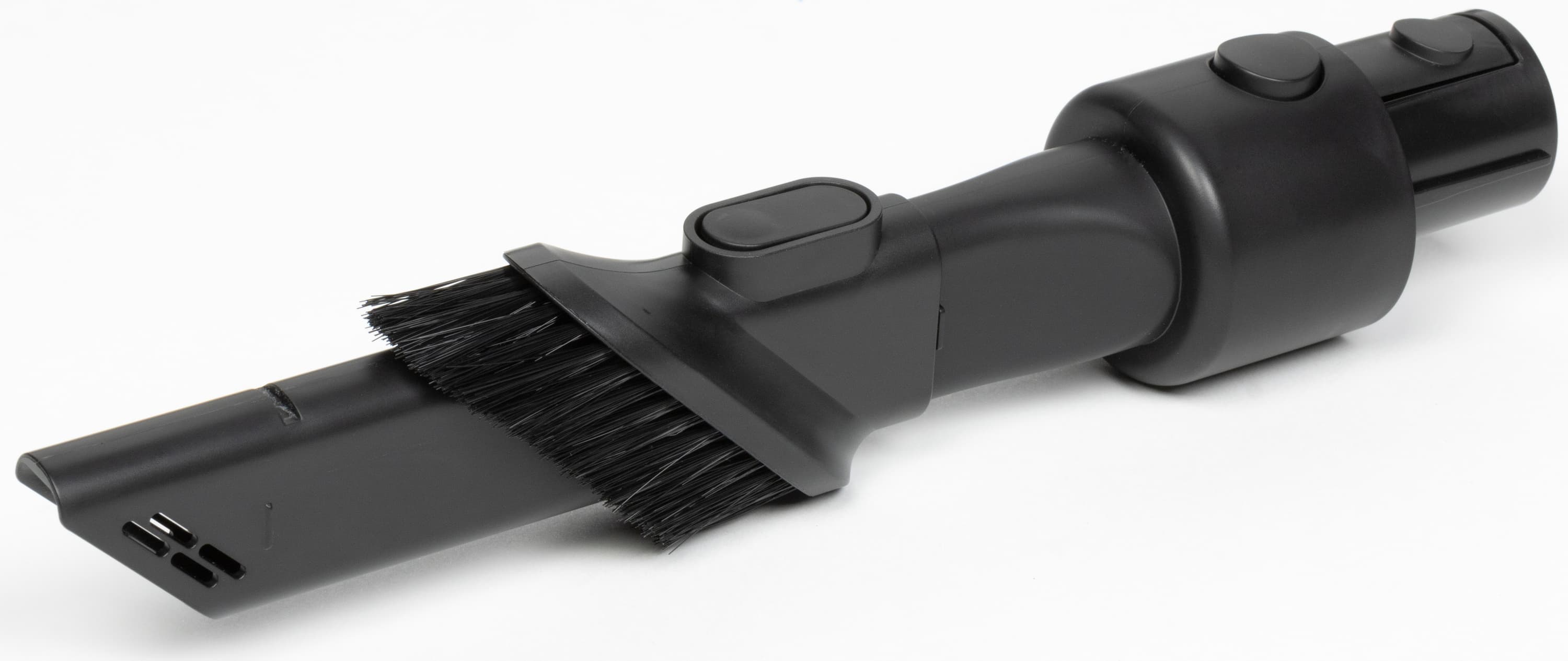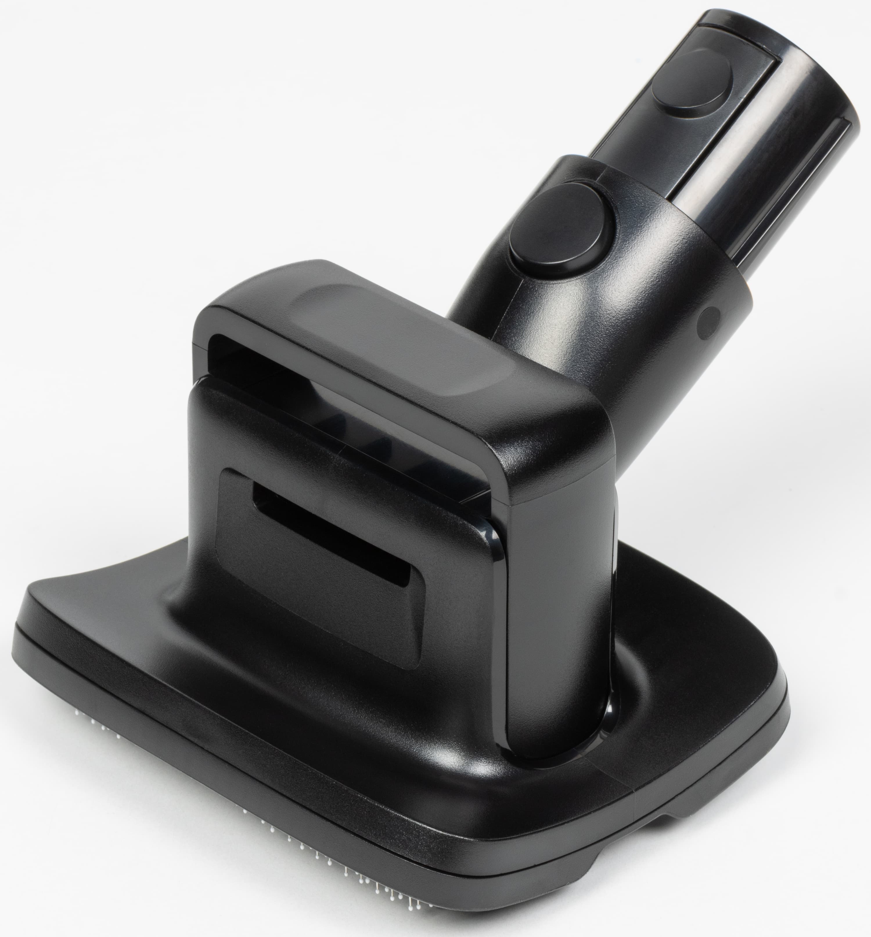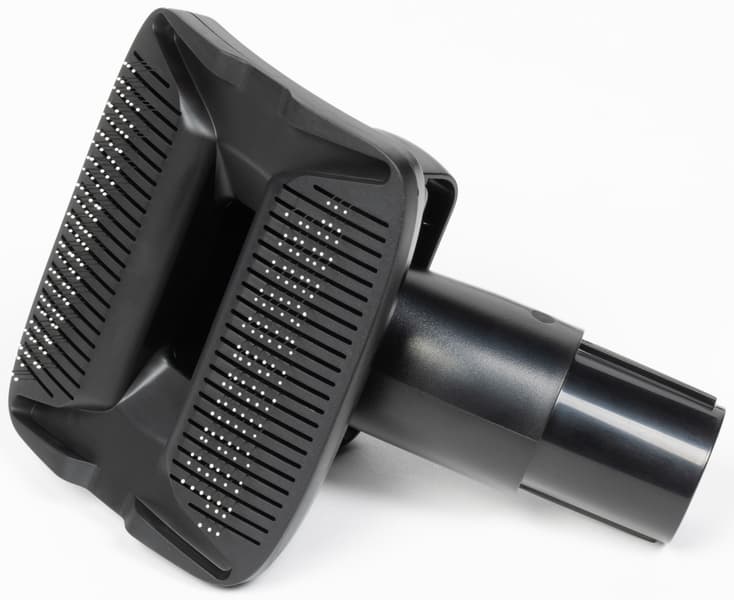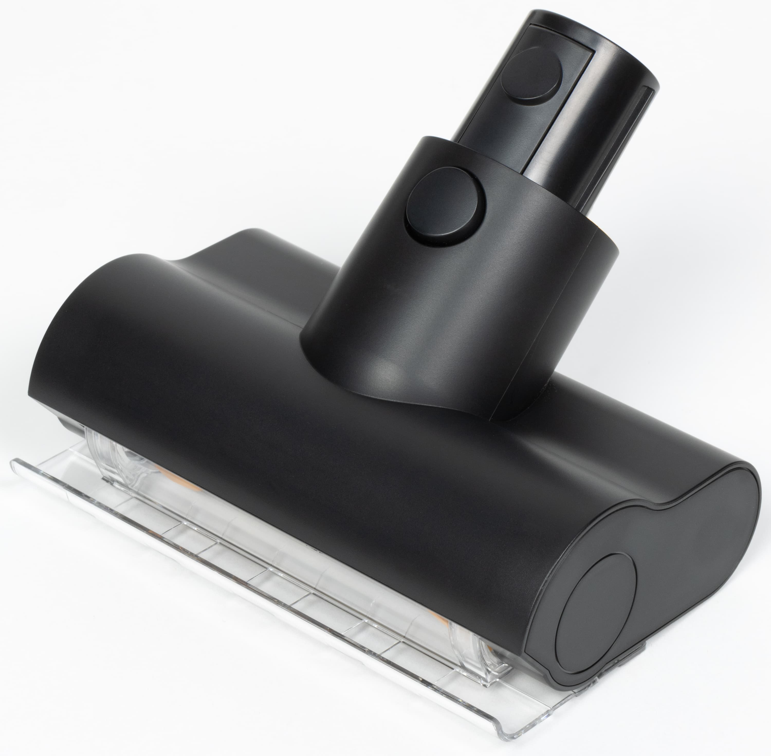 Третья входящая в комплект электронасадка предназначена для чистки мягкой мебели, кресел, кроватей и матрасов. Для наилучшего примыкания к поверхности у этой щетки имеется подвижная «подошва» из прозрачного пластика.