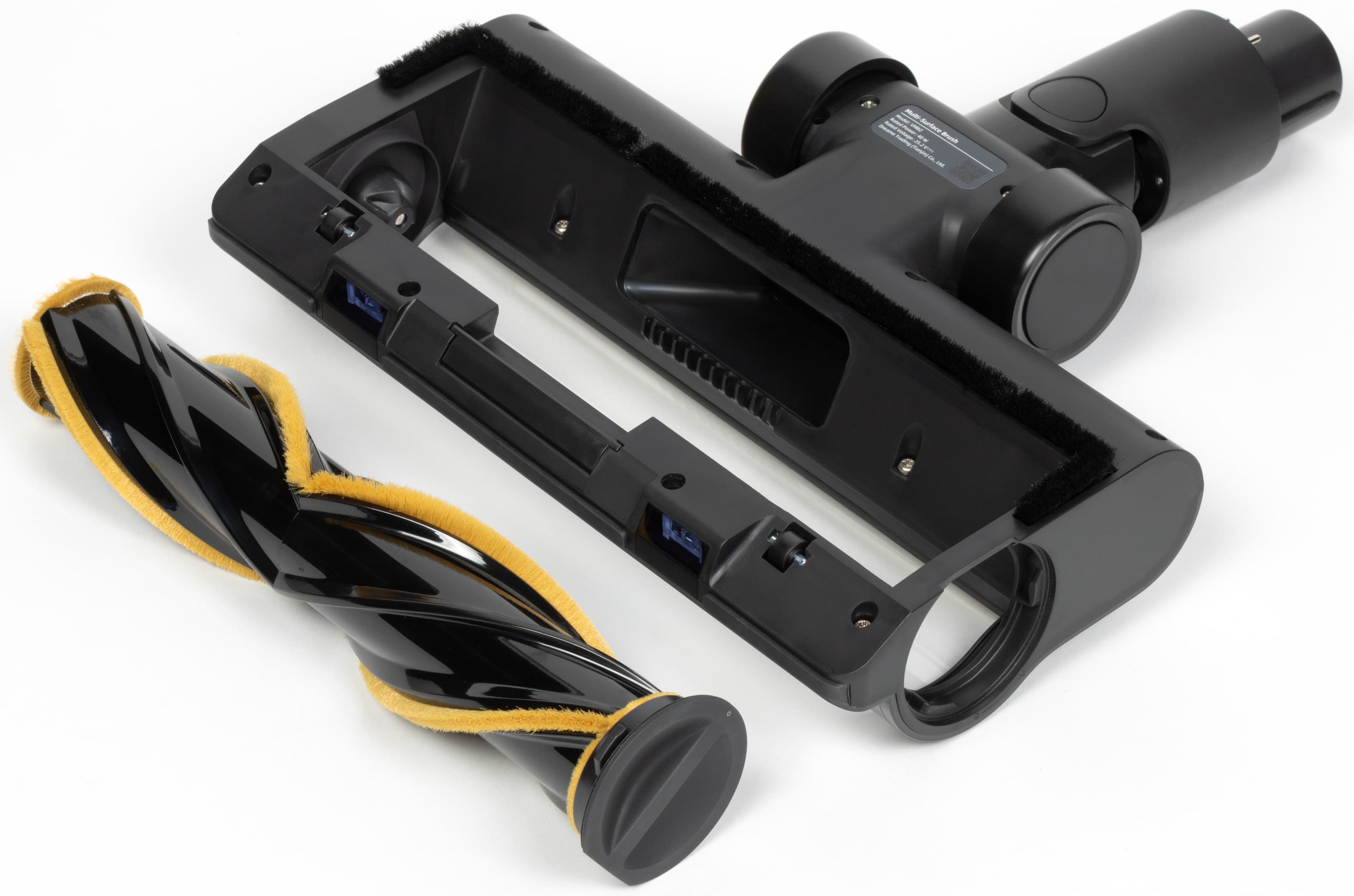 В передней части корпуса находится раструб для подключения удлинительной трубки и насадок, снабженный контактами для питания электрощеток.