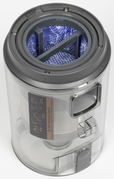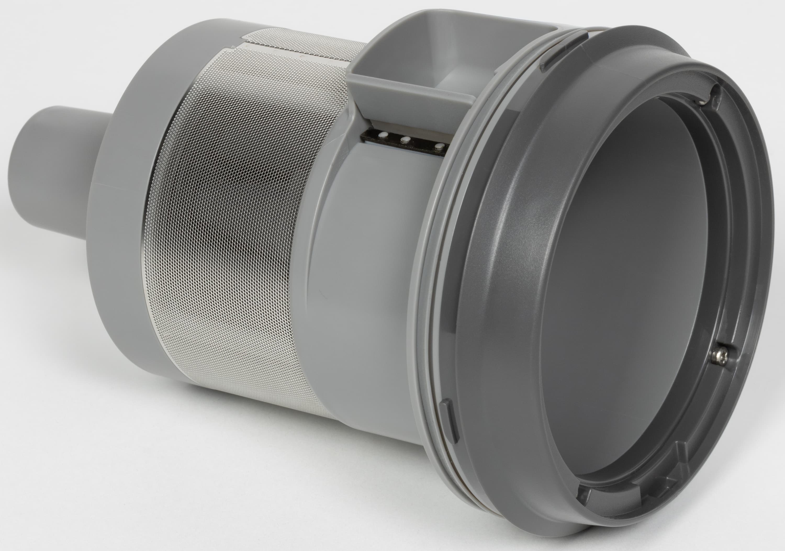 Циклонный элемент снабжен стальной сеткой с очень мелкой перфорацией: она задерживает крупный мусор, пропуская только самую небольшую пыль.
