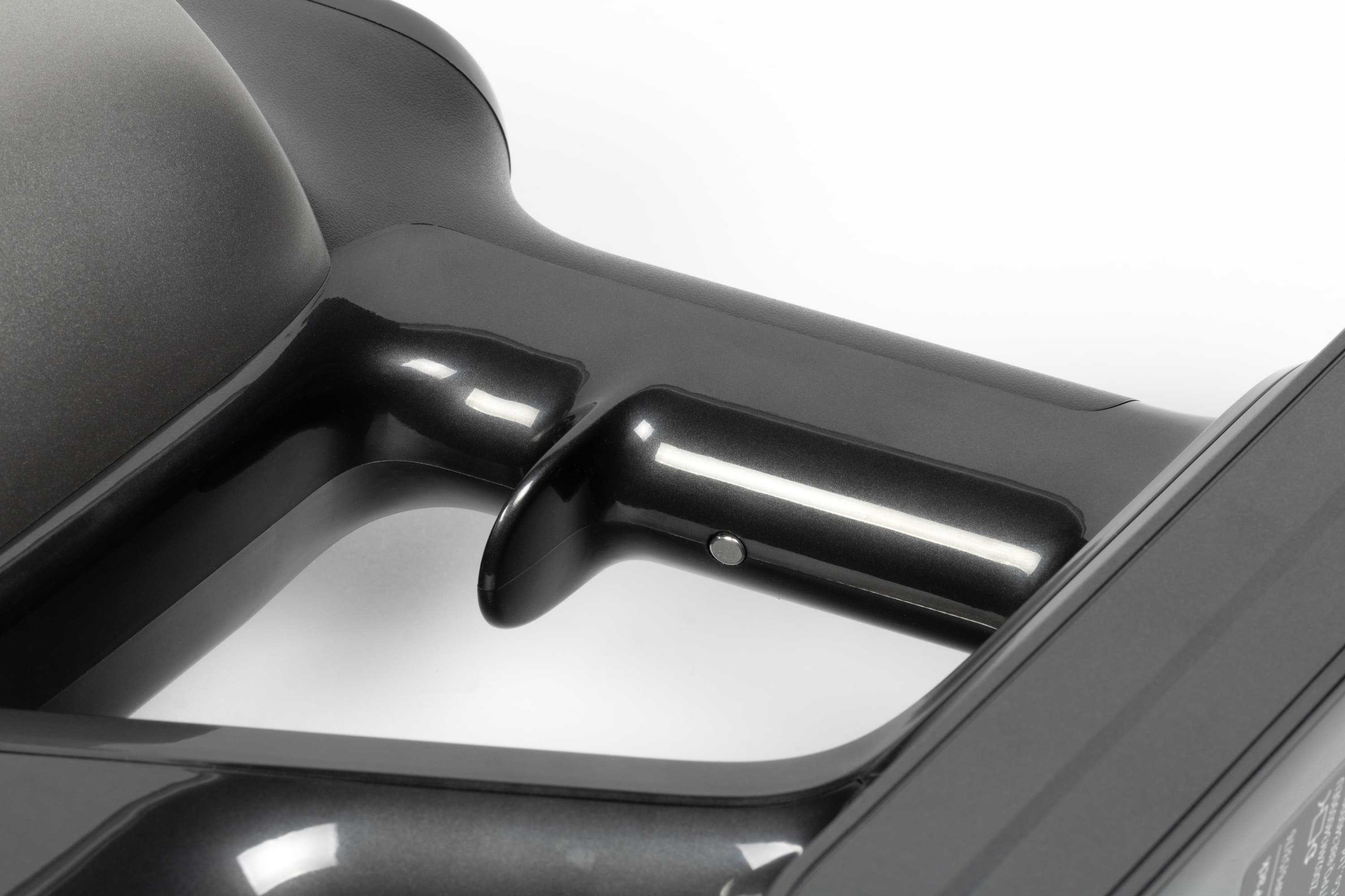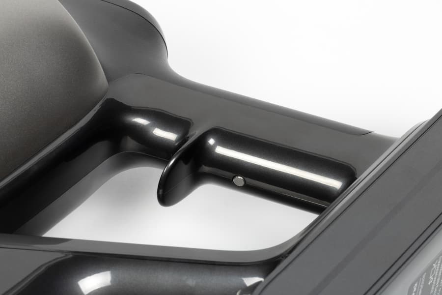 Между указательным и средним пальцами предусмотрен специальный держатель, благодаря которому пользователь может уверенно держать устройство одной рукой. Очень удобно, особенно если вспомнить, что весит пылесос чуть больше среднего.