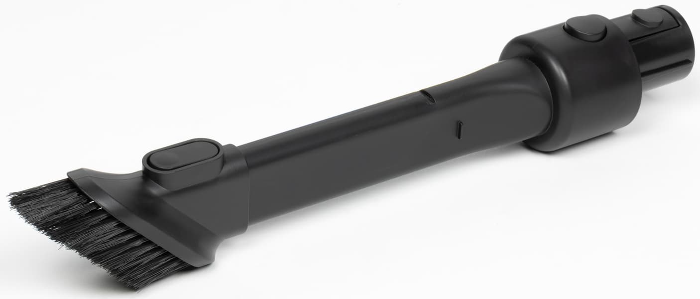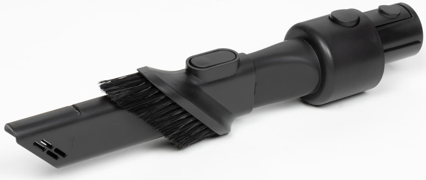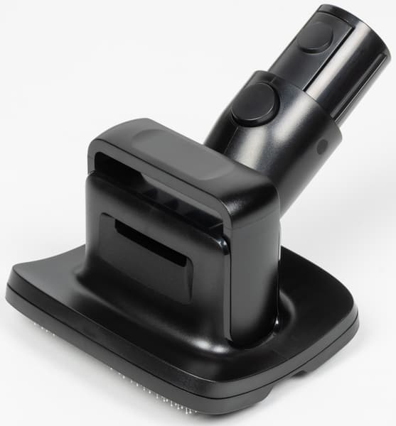 При нажатии на нее подошва насадки выдвигается, миниатюрные проволочки утапливаются, а собранная шерсть стряхивается и улетает в недра пылесоса.