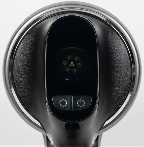 Для запуска и выключения пылесоса предназначена правая кнопка, расположенная на панели управления. Левая служит для выбора одного из трех режимов мощности.