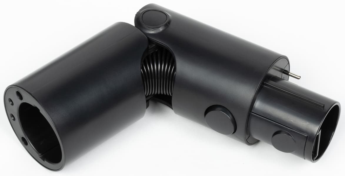 В прямом положении переходник фиксируется. Чтобы изменить угол, нужно нажать на боковую кнопку.