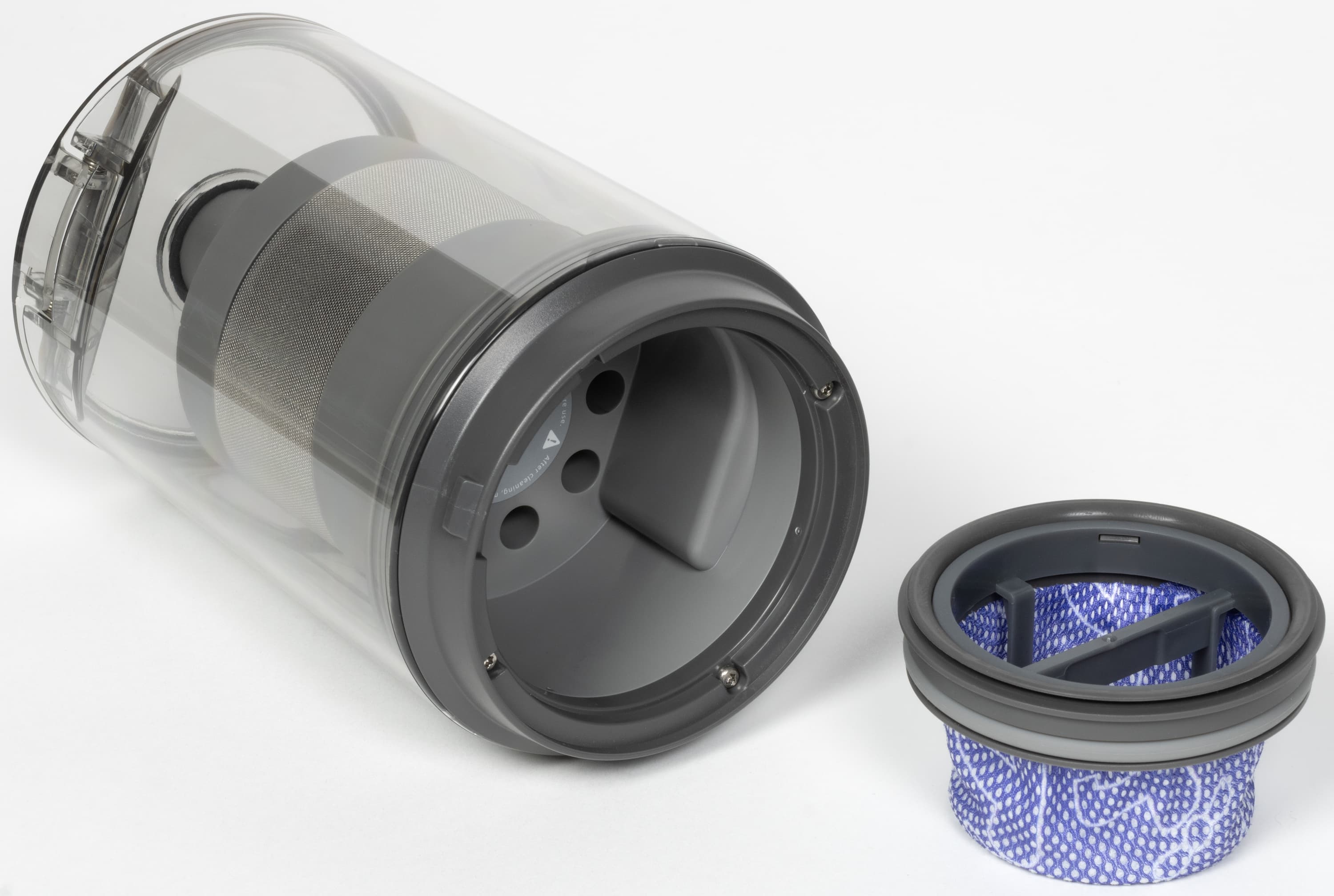 Наконец, заканчивая разговор о моторном блоке, упомянем о наличии цилиндрического HEPA-фильтра. Он устанавливается внутрь корпуса и фиксируется на своем месте с легким усилием.