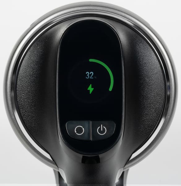 Также мы можем проверить степень зарядки, когда пылесос выключен и подсоединен к зарядному устройству.