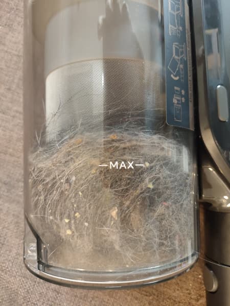 Измеренная нами мощность всасывания составила 9,6 аВт в минимальном режиме и 127,8 аВт — в максимальном. У Dreame Z30 весьма впечатляющий диапазон мощности всасывания, и в максимальном режиме он превосходит большинство пылесосов этого класса.
