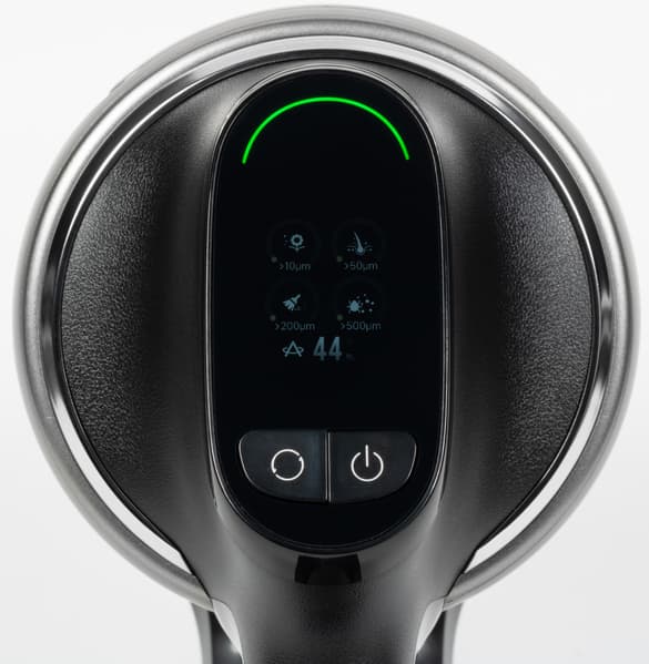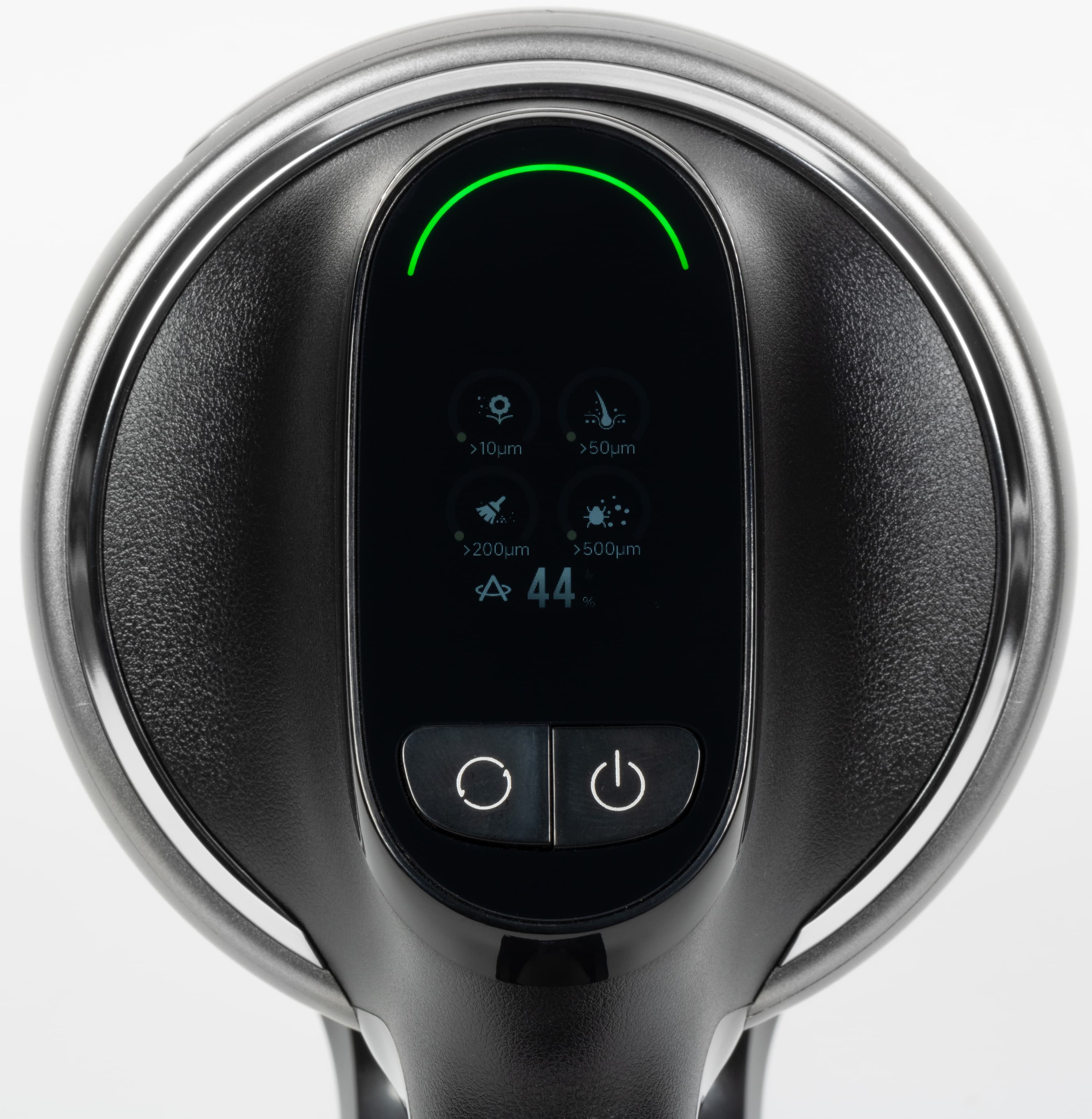 У пылесоса имеются встроенные инфракрасные датчики, которые определяют размер и количество собранных частиц. По завершении уборки мы сможем посмотреть на показания и узнать их количество в соответствии с размером: >10 мкм (например, пыльца), >50 мкм (например, волосы), >200 мкм (например, пыль), >500 мкм (например, клещ). Поначалу выглядит интересно и познавательно, однако любопытство проходит, и мы довольно быстро перестаем обращать внимание на эти подсчеты.