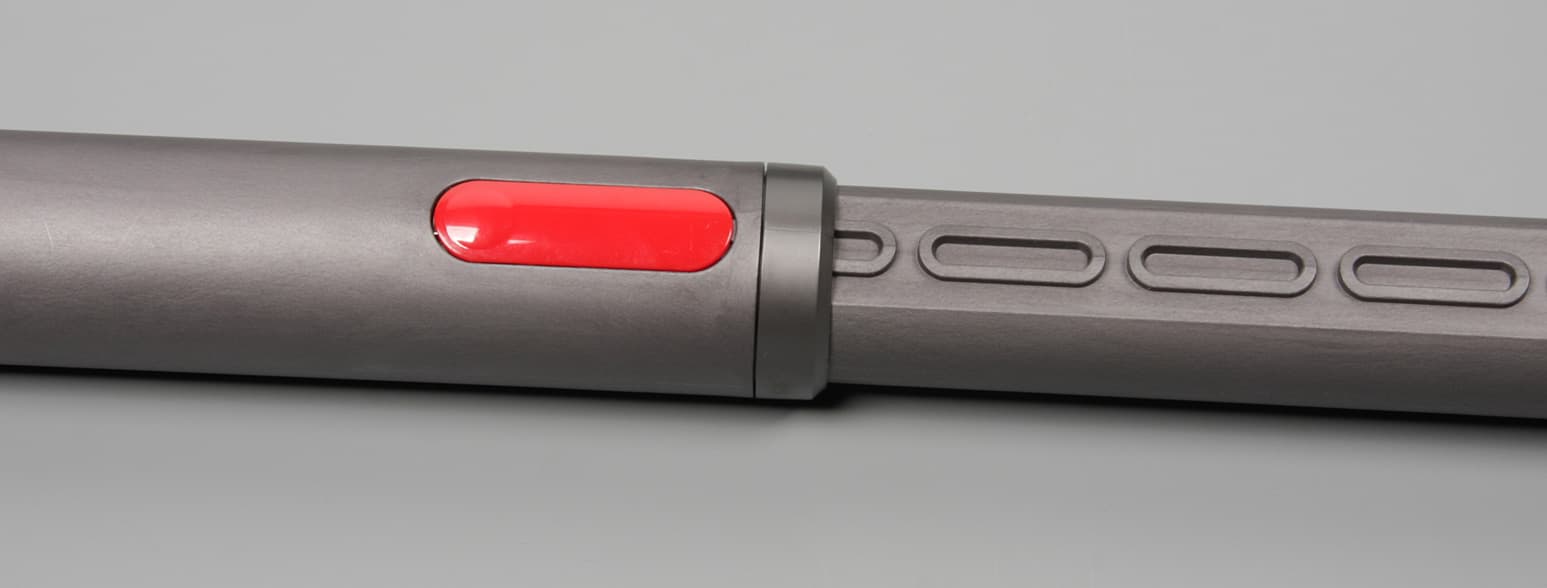 Носик насадки достаточно длинный, чтобы забираться в потаенные места накопления пыли, и с рядом отверстий на боковой поверхности, помогающих сохранять необходимый для работы циклонов и охлаждения мотора поток воздуха при полном перекрытии входного отверстия насадки.