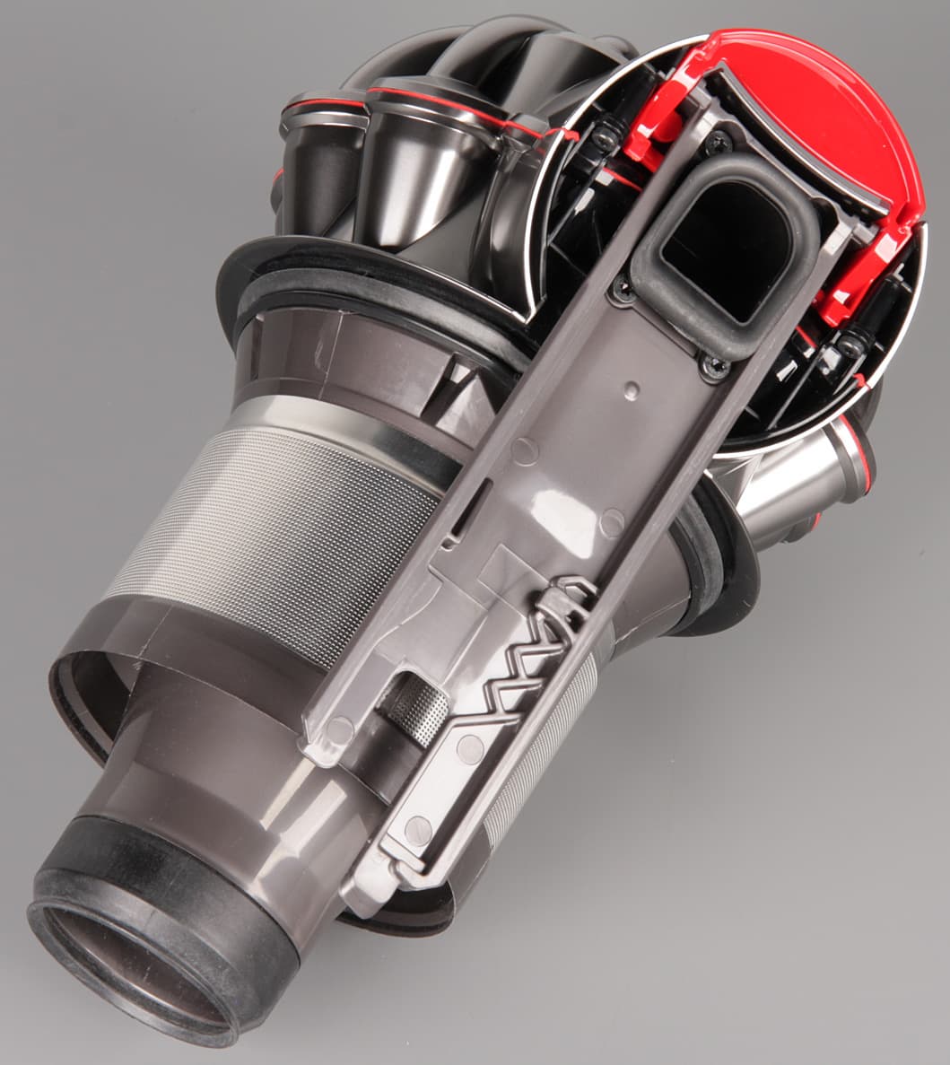 Эффективность циклонов тонкой очистки очень высокая, так как после нескольких циклов уборки предмоторный фильтр оставался с виду абсолютно чистым и мы его еще ни разу не мыли (как и у V6 и DC62, эксплуатирующихся уже несколько месяцев). Разумеется, никаких признаков загрязнения постмоторного фильтра также не наблюдалось.