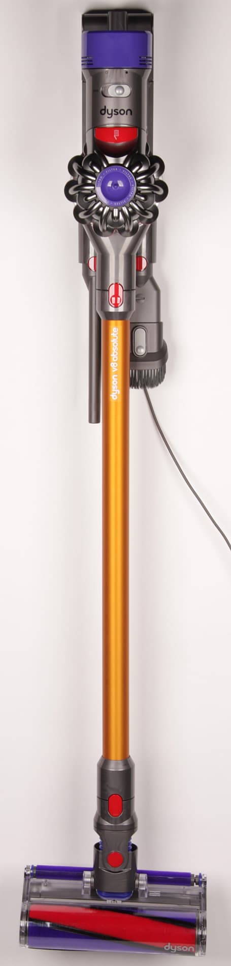 Легкий, компактный и мощный пылесос Dyson V8 Absolute обязательно станет самым любимым пылесосом в доме. С ним уборка из хлопотного занятия, требующего много времени и подготовительной работы, превратится в неутомительный процесс с быстрым результатом. Этому способствует продуманная до мелочей конструкция самого пылесоса и комплектных аксессуаров. Например, в комплект поставки включен очень удобный настенный кронштейн, который не просто позволяет заряжать пылесос, а также хранить его и набор насадок, но и, что не менее важно, делает Dyson V8 максимально доступным для экстренной уборки.