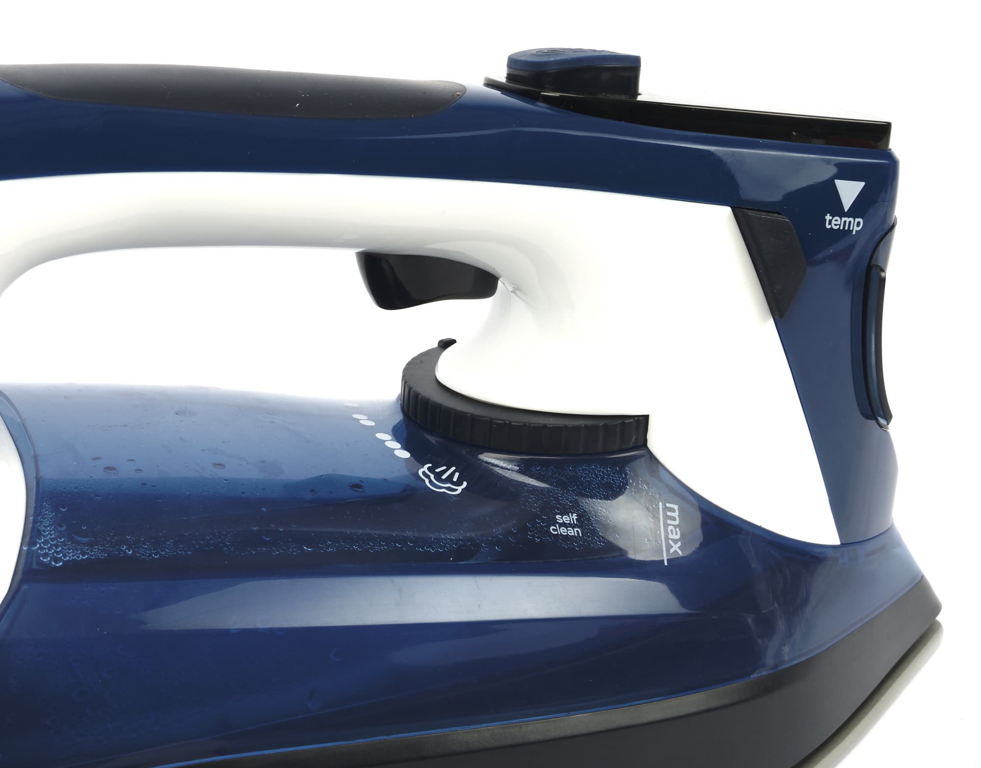 Из недочетов мы отметили разве что отсутствие передней подсветки, что сейчас является частой дополнительной функцией у утюгов и действительно облегчает глажение темных тканей. Также нам доставил небольшой дискомфорт шнур, выходящий прямо из ручки утюга. Его расположение мешает при разглаживании вещей, так как шнур, упираясь в запястье длительное время, может вызвать болезненные ощущения. Длина шнура составляет 1,9 метра и это тоже нельзя назвать его преимуществом — она будет достаточна для большинства пользователей, но найдутся и те, кому такой провод будет короток при вертикальном отпаривании и удаленности розетки.