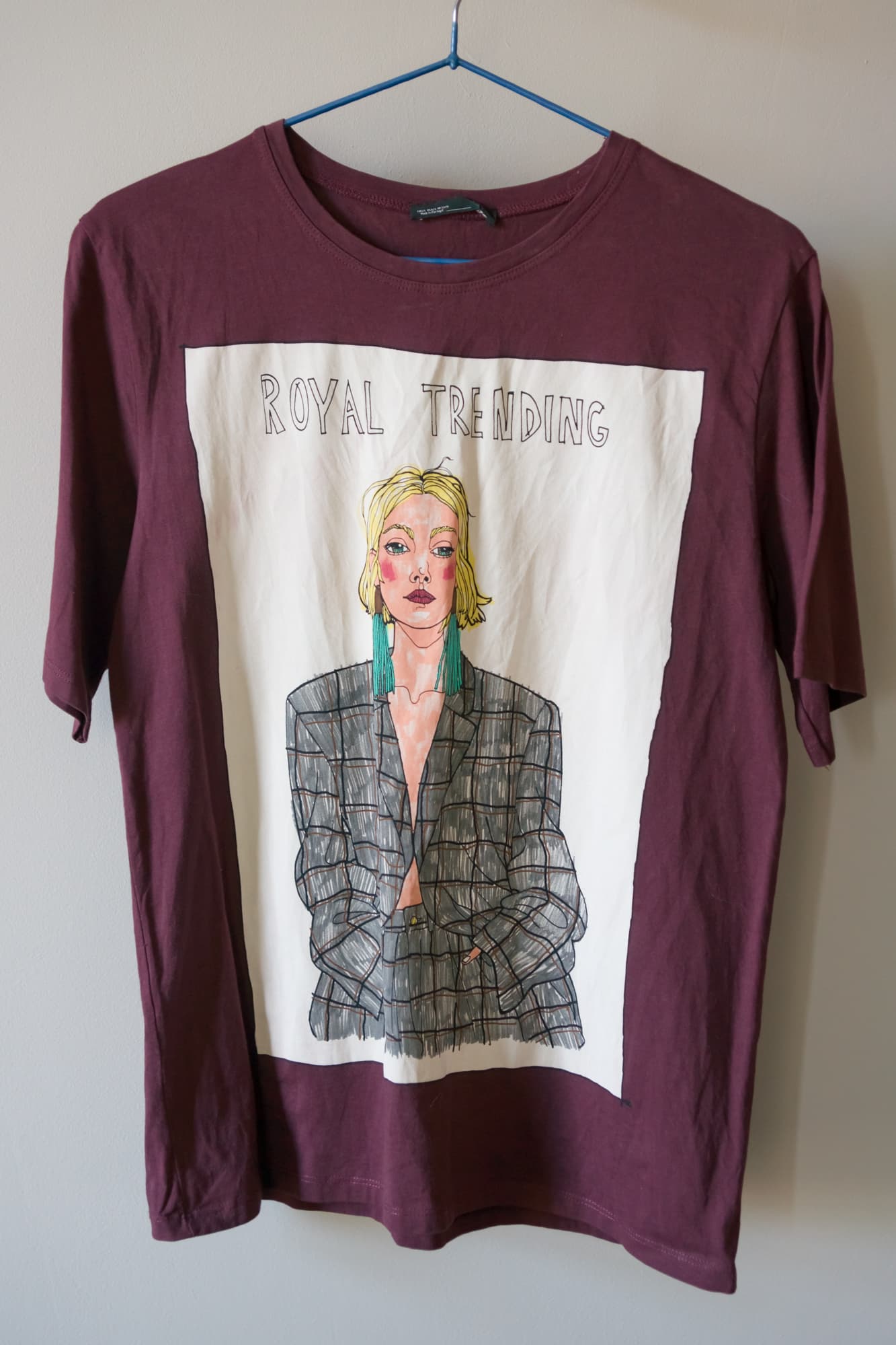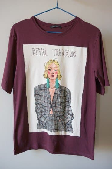 Мятую футболку мы для начала обработали в вертикальном положении на вешалке, вплотную прижимая утюжок к ткани, а свободной рукой натягивая нижний край. В целом, мы получили неплохой результат, но складки местами все еще оставались слишком заметными.