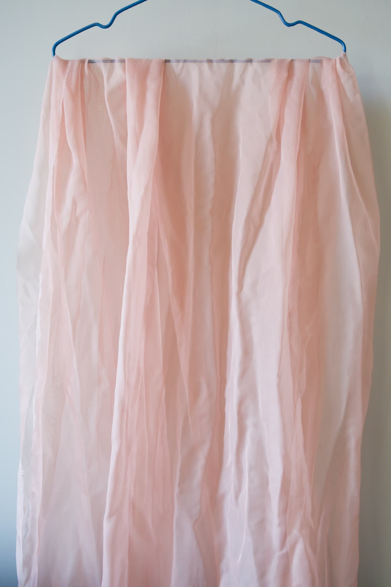 В отпаривателе нет регулировки мощности постоянной подачи пара и температуры нагрева утюжка, поэтому нам было особенно интересно, как он справится с деликатной тканью и не навредит ли материалу? Мятую органзу мы обрабатывали строго вертикально, сложив ткань вдвое. Нижний край слегка натягивали, а сам утюжок прижимали к материи вплотную. Всего за несколько минут органза полностью расправилась, утюжок не подпалил ткань и не оставил никаких зацепок.