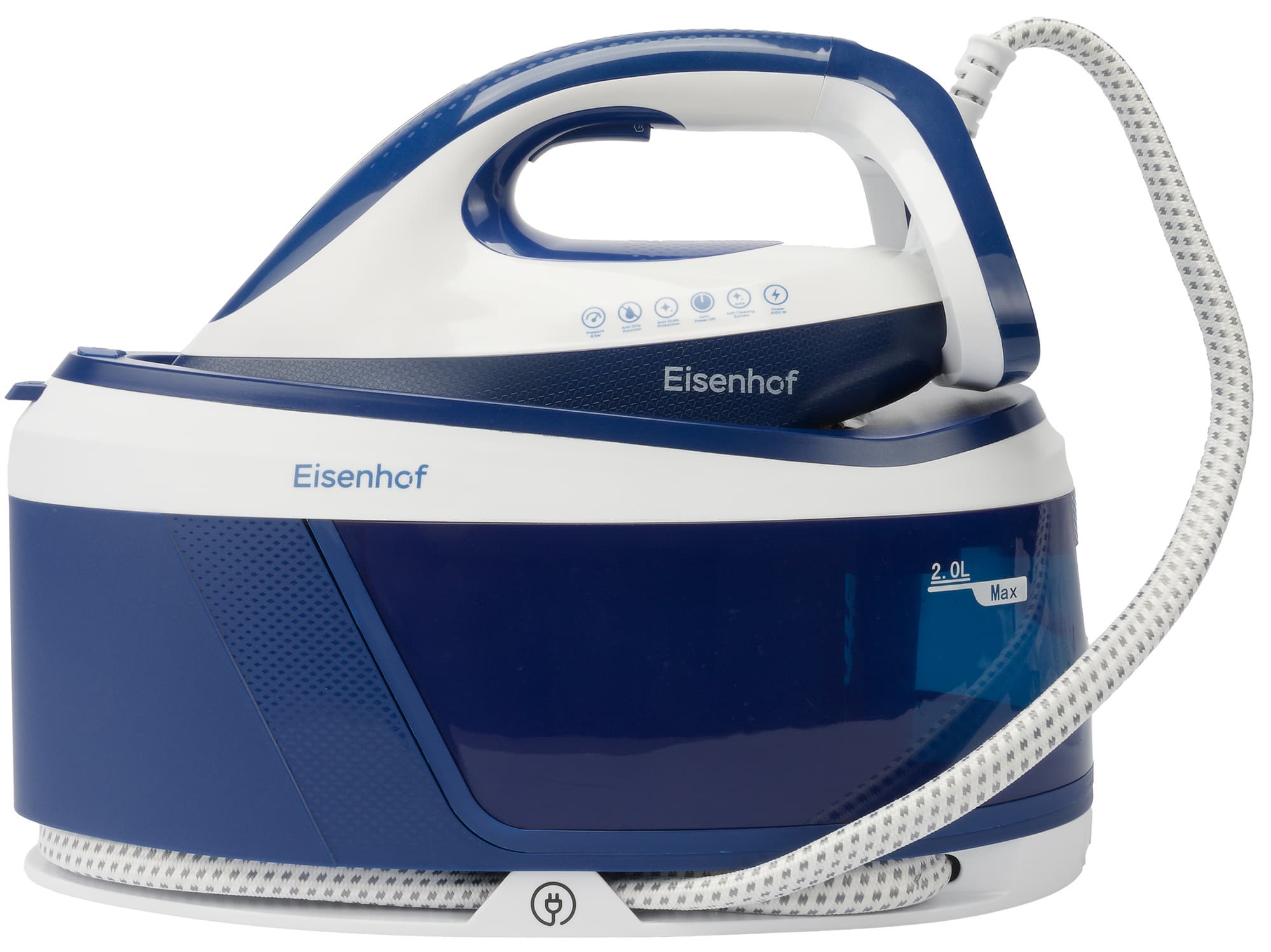 Управление Eisenhof VS300 осуществляется тремя кнопками, которые находятся с тыльной стороны корпуса в самом низу, за подачу пара отвечает клавиша с внутренней стороны ручки утюга.