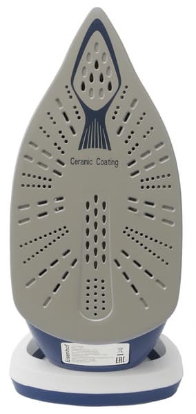 Утюг с керамическим покрытием имеет каплевидную форму. Покрытие выглядит качественным, поверхность гладкая, без дефектов.