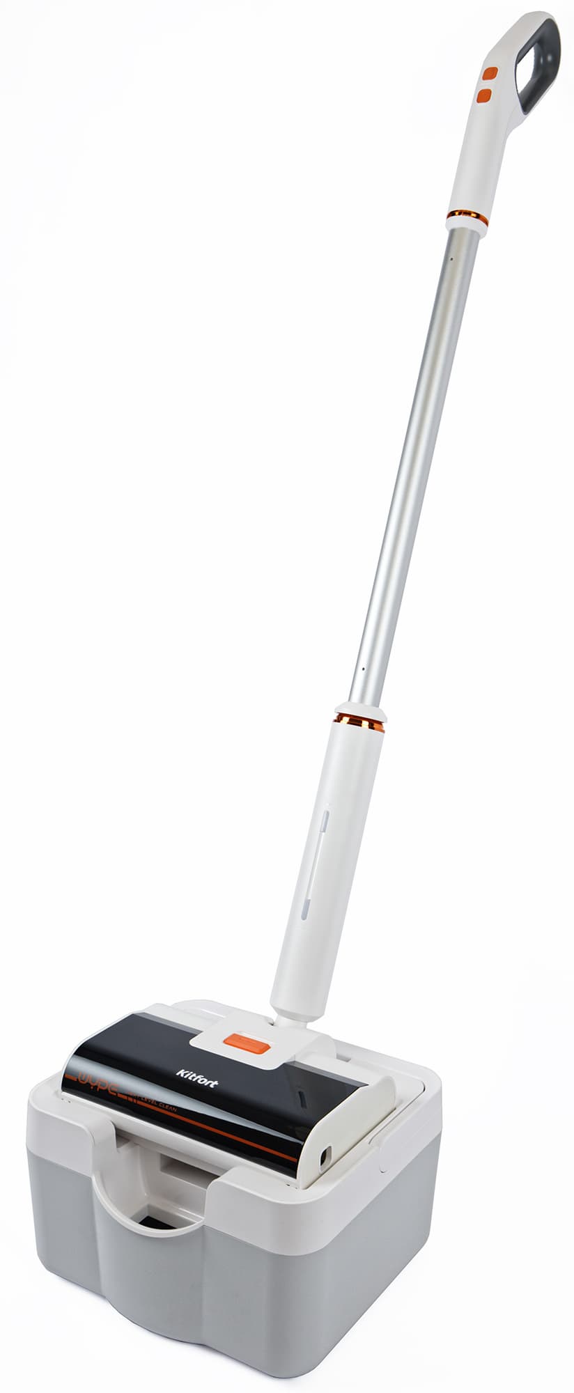 Электрошвабра — альтернатива классической швабре. Пол моет моторизованный вращающийся валик из микрофибры, вода подается на него из встроенного резервуара. Пол не просто протирается, а достаточно тщательно отмывается чистой водой, а грязная всасывается в специально предназначенный для нее контейнер. Электрическая швабра может собирать с пола пыль и самый мелкий мусор, но крупный надо удалять пылесосом или веником. На рынке беспроводные электрошвабры давно: в 2021 году мы тестировали, например, модель Kitfort KT-599, дополненную базой, представляющей собой пластиковый бак с ручкой для переноски, перекладиной для отжима валика и отсеком для слива грязной воды, внутрь которого устанавливается решетчатая корзина для крупного мусора — такое современное прочтение ведра.