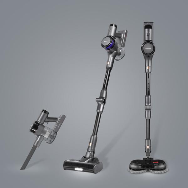 Кроме того, существуют многофункциональные вертикальные пылесосы, дополненные моющими насадками, в которые заливается вода, подающаяся на моторизованные валики или мопы — например, Redmond VH1311 Pro Max.