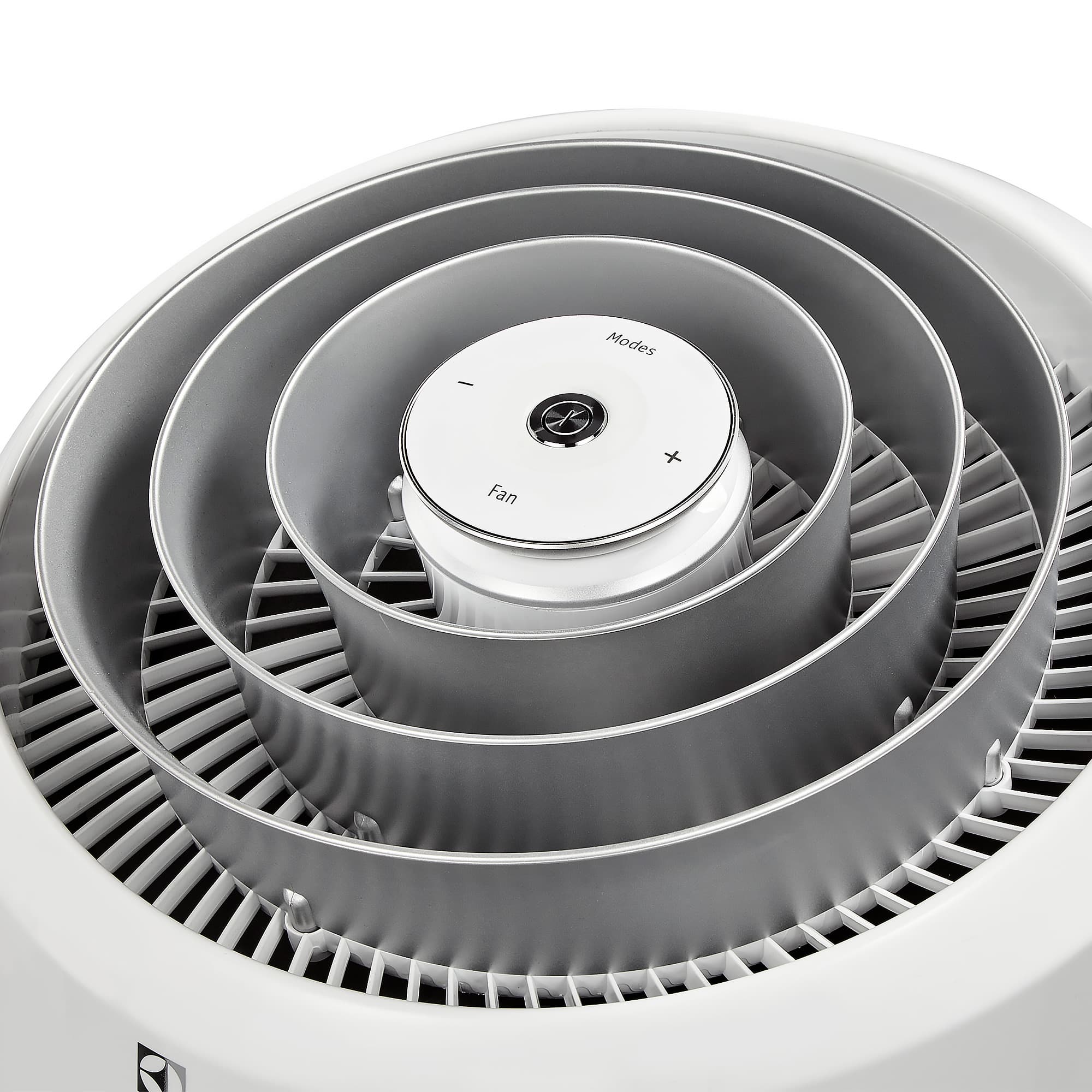 Корпус прибора цилиндрический. Большую часть его площади спереди и по бокам занимает впускная решетка. Охлажденный или нагретый воздух выходит из верхней решетки. Она снабжена тремя концентрическими кольцами, направляющими поток вверх под небольшим углом от вертикали. По бокам у кондиционера две пластиковые ручки, за которые его можно переносить.