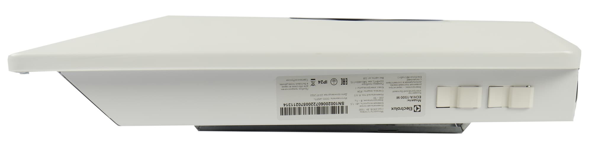 С левого бока расположена наклейка с номером модели и технической информацией об устройстве.