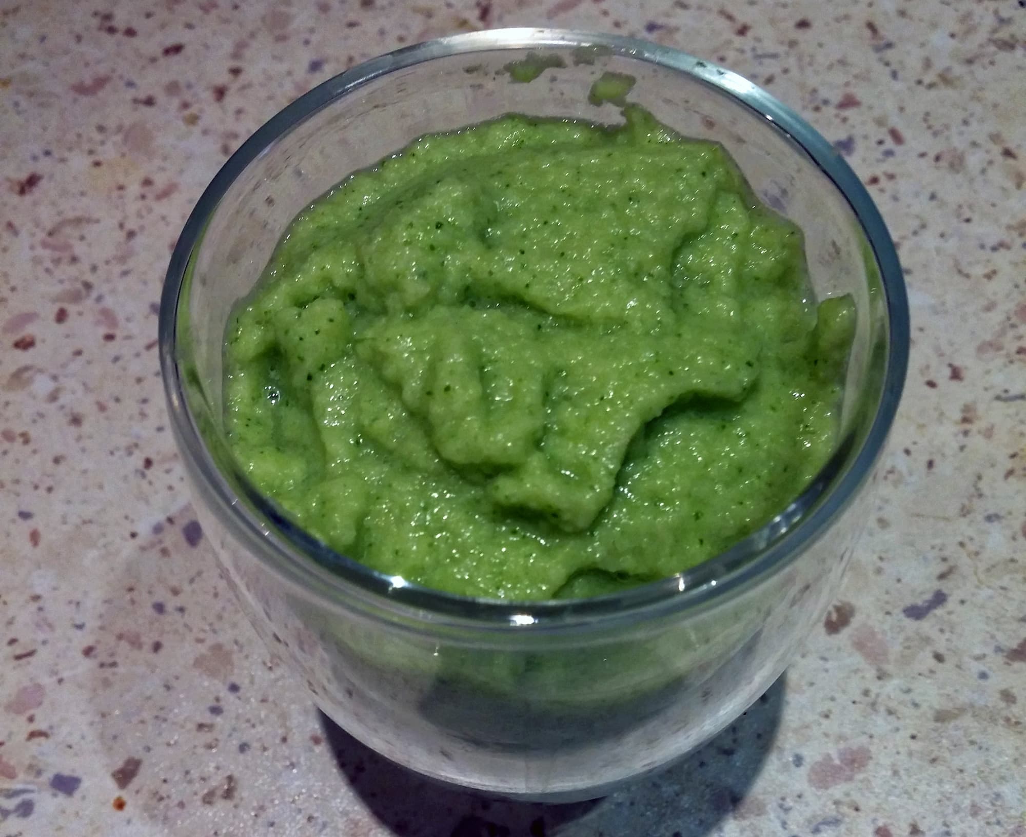 Мы нарезали спелый авокадо, добавили запеченный до полуготовности кабачок, веточку кинзы, 3 зубчика чеснока, лимонный сок и оливковое масло и запустили блендер два раза по 20 секунд. Результат нас порадовал: нежный однородный соус без лишних усилий.