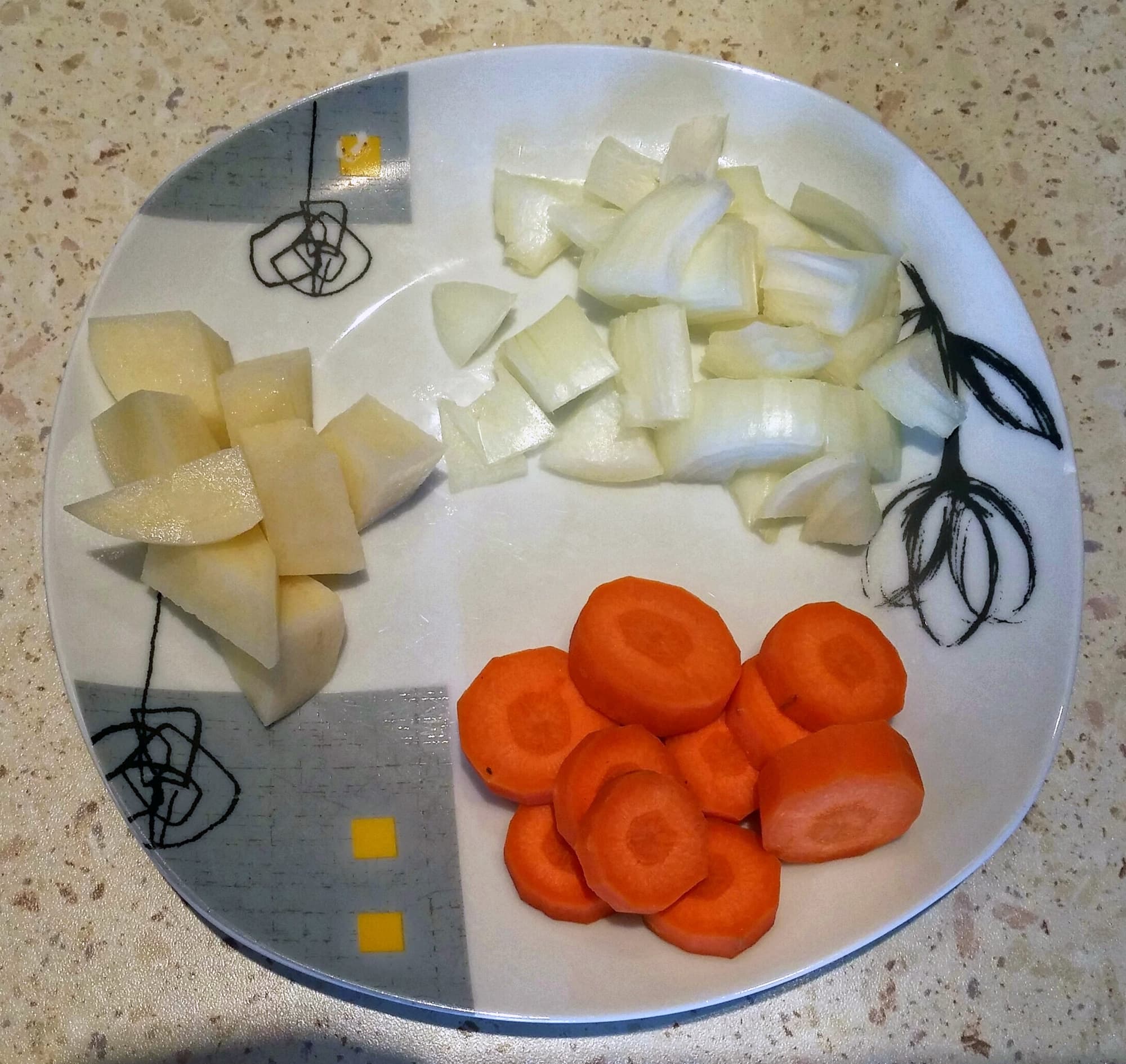 Мы строго следовали инструкции, очистили и нарезали кусочками около 2 см по 40 г моркови, картофеля и лука. Добавив 80 мл воды, мы запустили блендер, и, как и было обещано, за 2 раза по 10 секунд прибор справился с измельчением овощей.