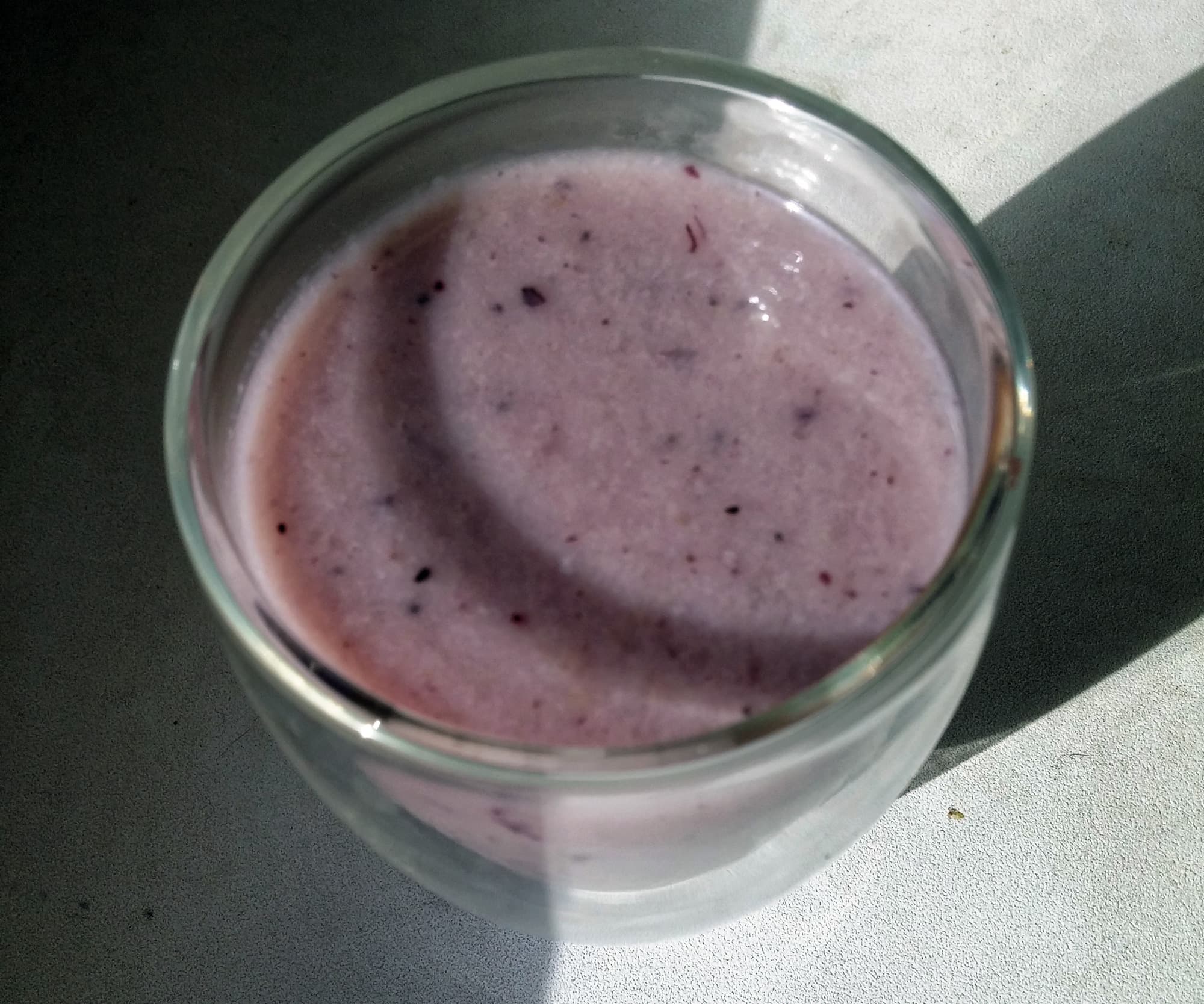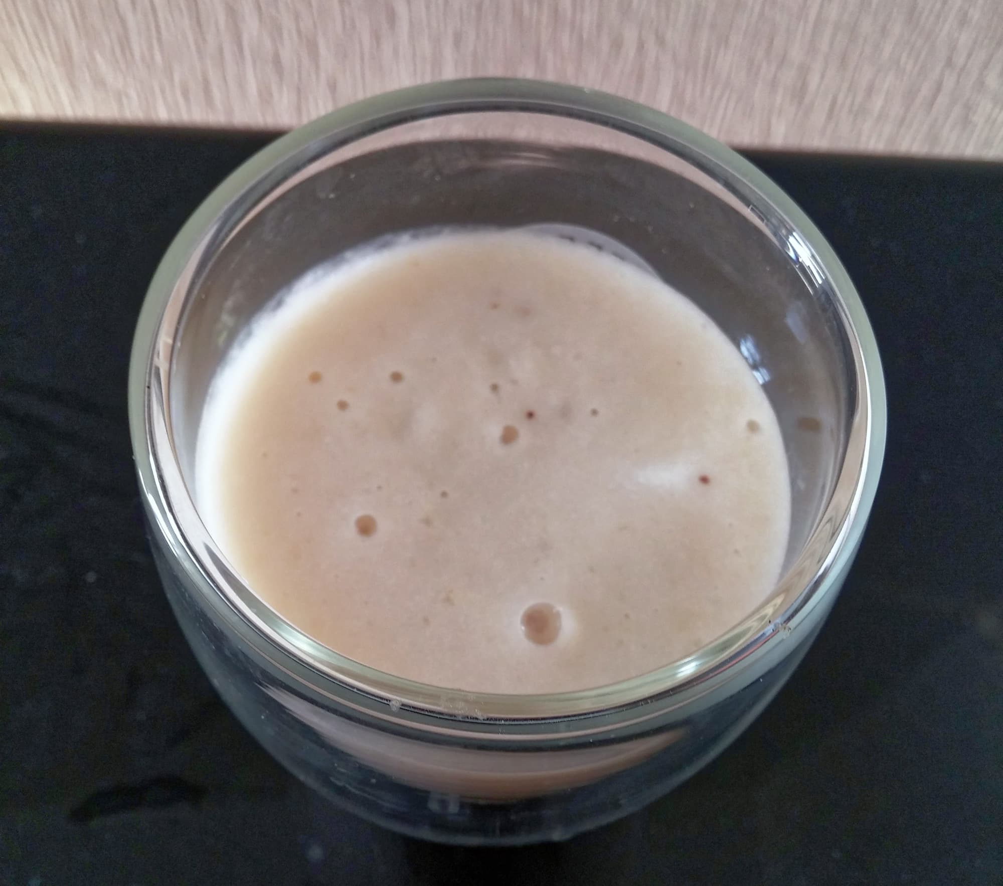 На первом фото молоко смешано только с бананом, на втором — с грушей и черникой. Объем чаши 600 мл отлично подходит для приготовления двух хороших порций.