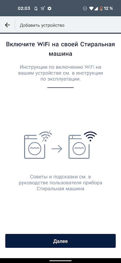 На последней странице руководства имеется QR-код, который ведет на страницу мобильного приложения, управляющего стиральной машиной.