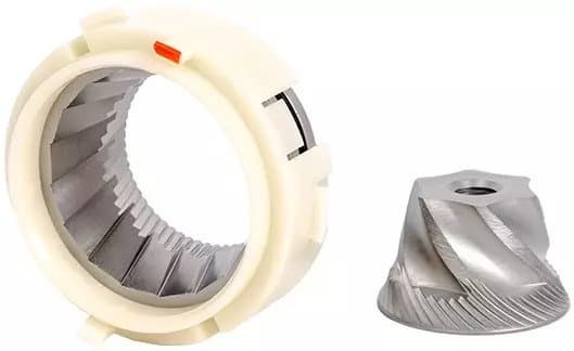 Хорошо нам знакомые ротационные кофемолки (те самые, где вращается лопастной нож) мы сразу отправляем в дальний ящик (либо оставляем для помола специй). Туда же отправляются так называемые «псевдожерновые» кофемолки — те самые, в которых используются жернова с характерными «зубьями», которые скорее дробят и ломают кофейные зерна, чем перетирают их. Тут мы отметим, что в описании товаров данные кофемолки почти всегда позиционируются как жерновые, что может ввести начинающего кофемана в заблуждение.