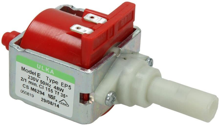 Подавляющее большинство кофеварок начального и среднего уровня, а также почти все бытовые рожковые кофеварки оснащены вибрационной помпой, нагнетающей давление посредством колебания специального поршня (пистона). Основной минус такой помпы — неравномерное давление, которое повышается и понижается вместе с движением пистона. Серьезным недостатком это, впрочем, назвать нельзя. Дело в том, что нормальная вибрационная помпа в большинстве случаев окажется достаточно хороша для данного класса кофеварок, а ее влияние на качество готового напитка окажется несоизмеримо мало по сравнению с другими технологическими упрощениями и компромиссами. Вибрационную помпу можно встретить как в самых дешевых кофеварках (от 5000 рублей), так и в довольно дорогих (150 тысяч рублей и более).