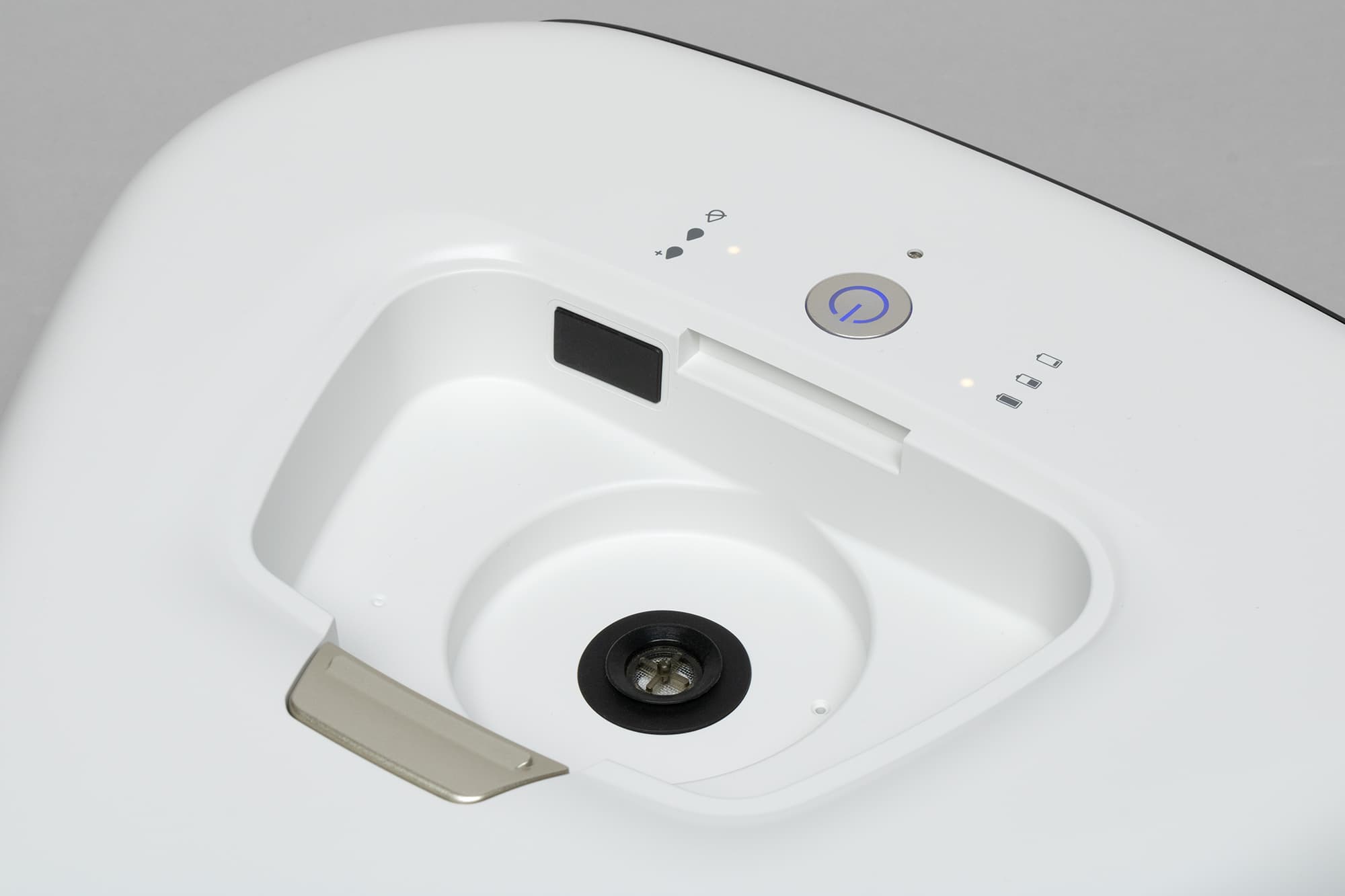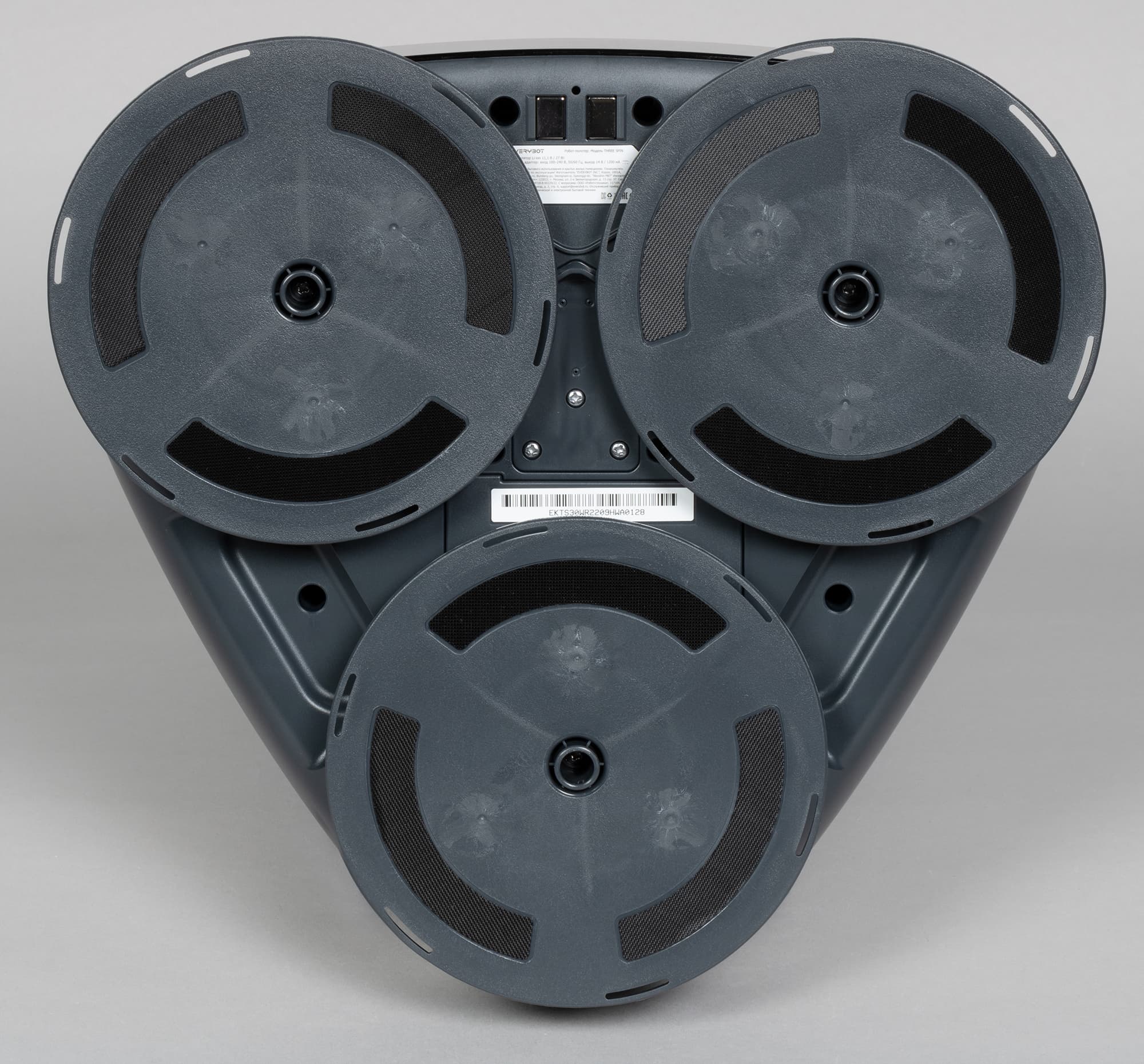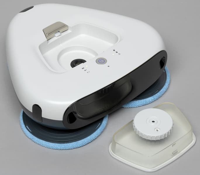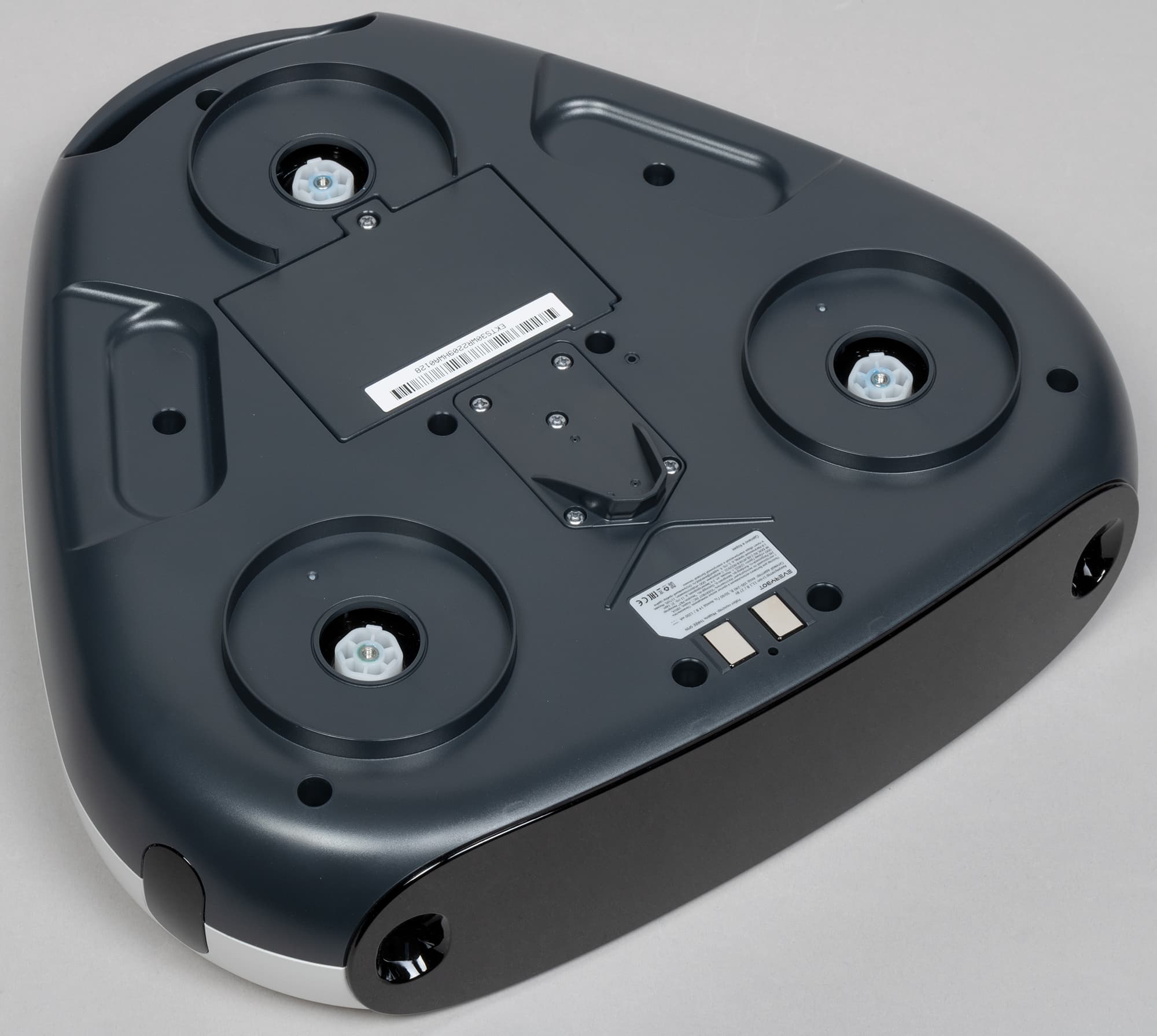 Корпус робота в футуристическом дизайне имеет треугольную форму, что обусловлено его основной особенностью — уникальным чистящим модулем на базе трех вращающихся дисков. Высота робота всего 9,9 см, что позволит ему проходить под большинством стандартной мебели.