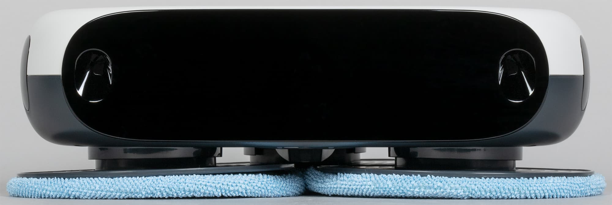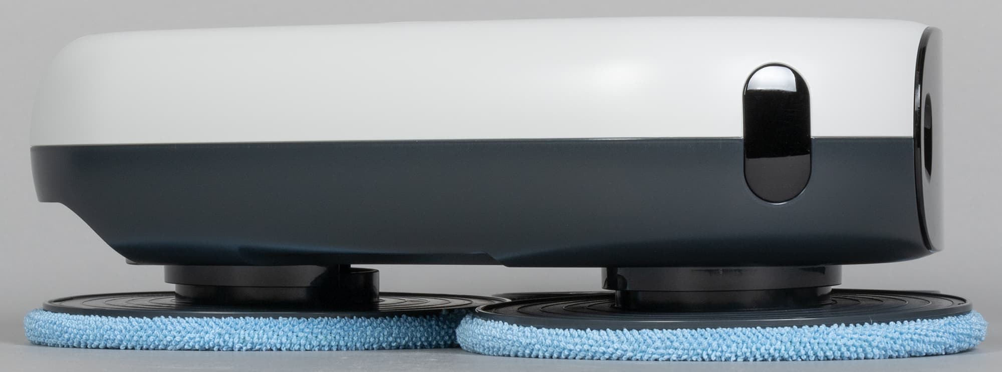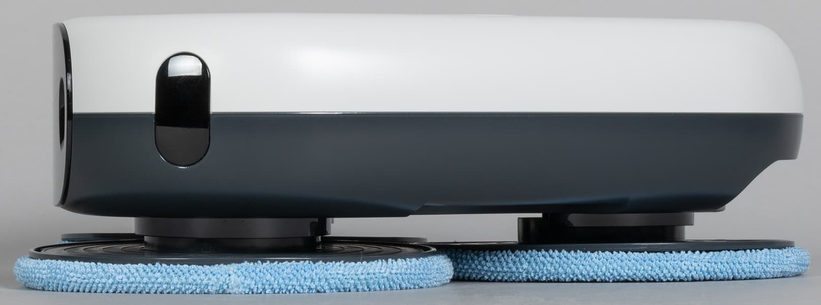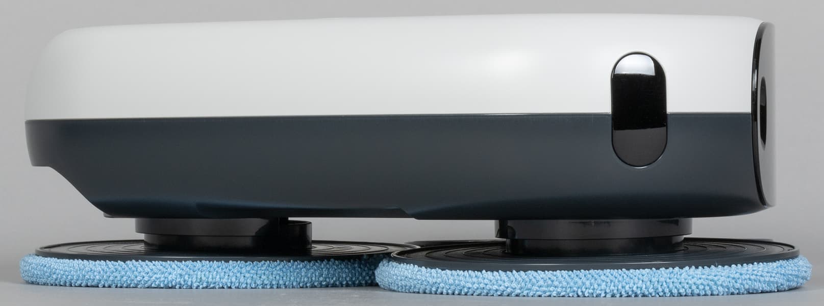 Этот симпатичный робот достаточно самостоятелен, чтобы освободить пользователя от мытья полов и не дергать по мелочам. Он хорошо ориентируется в пространстве и в целом, следить за ним особо не требуется. Нужно только иногда менять салфетки и доливать по необходимости воду. Полотер хорошо протирает пол вдоль плинтуса, а для удачного прохождения под мебелью ему достаточно всего 10 см пространства. К плюсам также отнесем рекордно низкий уровень шума при работе и компактные размеры устройства, что определенно добавляет комфорта при эксплуатации.