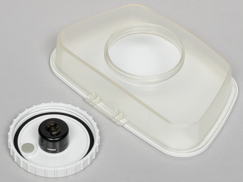 Объем резервуара равен 340 мл. Емкость из прозрачного пластика крепко завинчивается большой круглой крышкой.