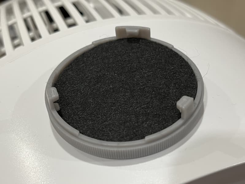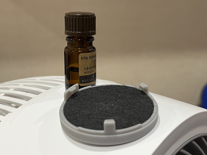 Для того, чтобы ей воспользоваться, необходимо открутить небольшую крышку на передней части решетки и обнаружить там специальную синтетическую подушечку для эфирного масла. Производитель предлагает добавить в нее пару капель эфирного масла, закрутить и сразу включать прибор.