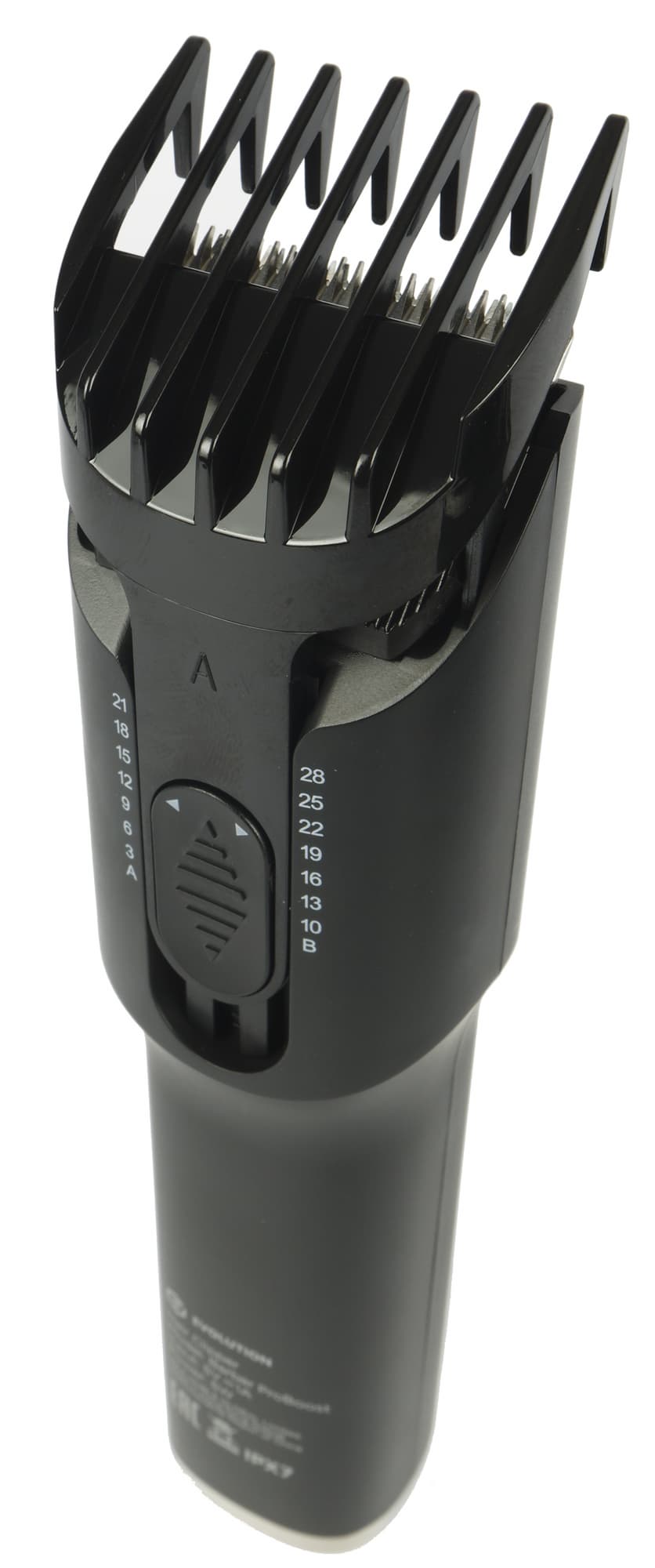 Первый гребень позволяет регулировать длину стрижки в диапазоне от 3 до 21 мм с шагом в 3 мм. Второй — от 10 до 28 мм с шагом в 3 мм.